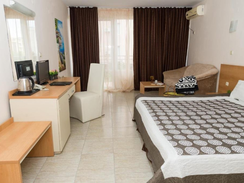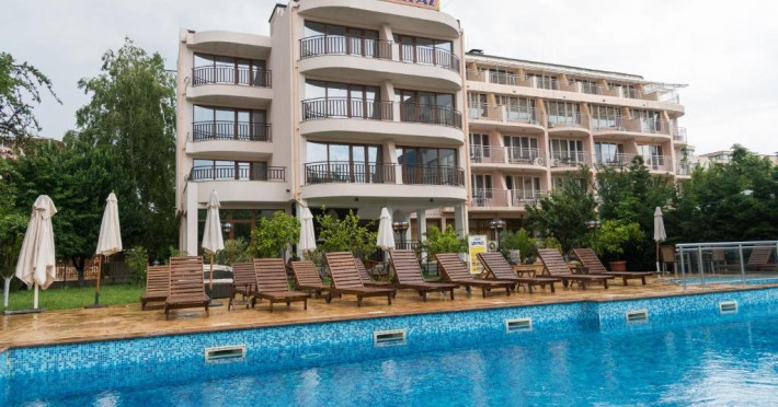 Localizare: Hotelul este situat in inima statunii Sunny Beach, la 300 de metri de plaja. Facilitati hotel: Hotelul pune la dispozitia turistilor piscina si piscina pentru copii, gradina, internet WiFi este gratuit in zonele publice, restaurant, bar, loc de joaca pentru copii, parcare gratuita. Dotari camere: Camerele sunt dotate cu aer conditionat, TV prin satelit, telefon, uscator de par.