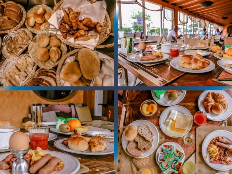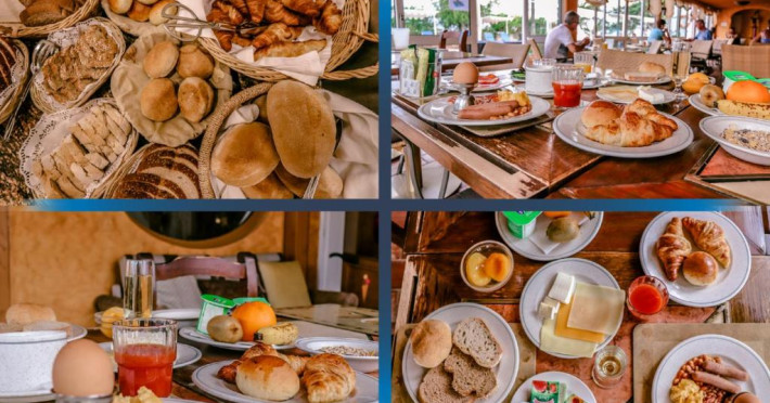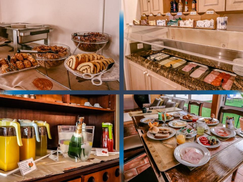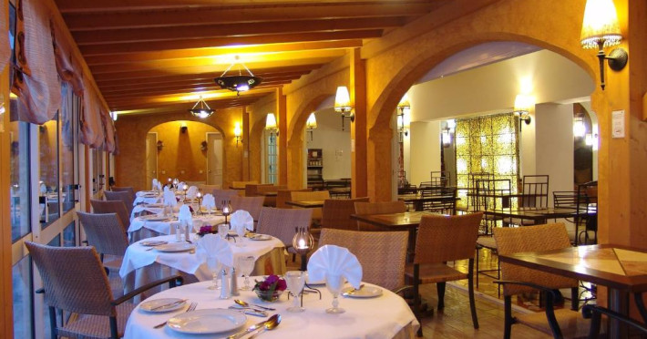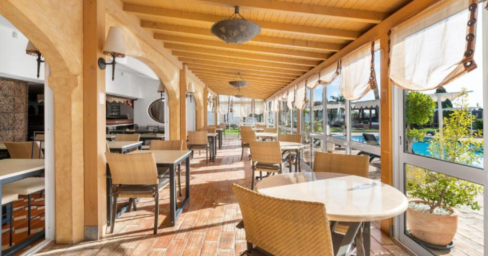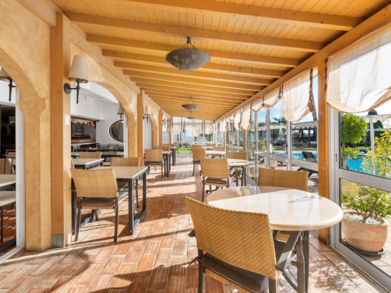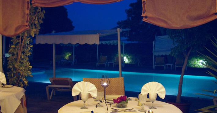 Oaspeții iși pot incepe ziua cu un mic dejun tip bufet. Restaurantul hotelului se deschide spre zona piscinei și servește preparate din bucătăria internațională și mediteraneene. Sunt disponibile și meniuri pentru diete speciale. Cina este disponibilă cu aranjament prealabil și trebuie rezervată zilnic la recepție inainte de ora 17:00.