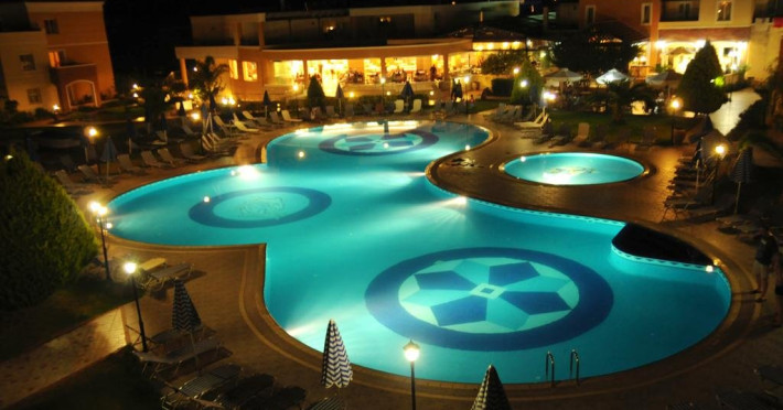 Facilitati HOTEL CHRISPY WORLD: Hotelul dispune de: gradina, restaurant, schimb valutar, 2 piscine exterioare si un bazin pentru copii, loc de joaca pentru copii interior si exterior, bar interior si bar la piscina, Wi-Fi, teren de tenis, sala de fitness, sauna si jacuzzi.