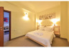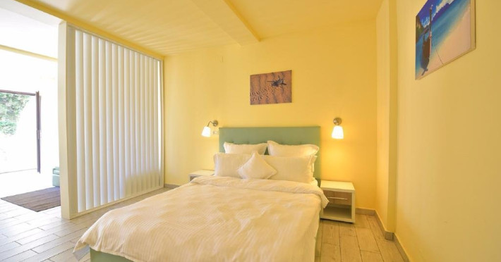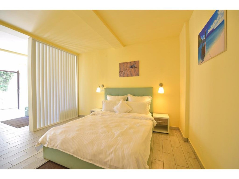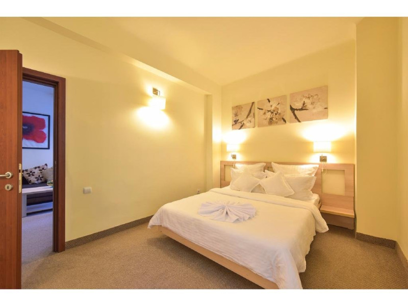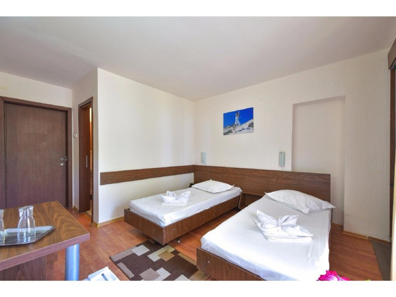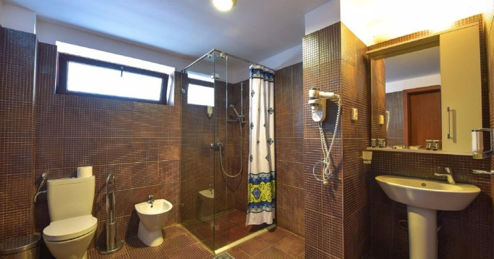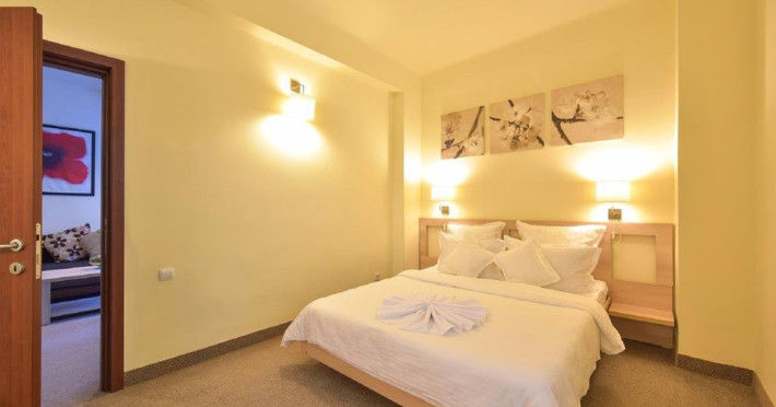 Descriere: CAZARE- structura formata din 3 corpuri principale de cladire, cu urmatoarea capacitate: 282 camere duble, dintre care 32 de camere duble family (64 de camera duble comunicante, din care 32 duble matrimoniale si 32 duble twin) si 12 apartamente (peste 60 mp unui apartament). Dotari camere: - TV color (televiziune prin cablu), telefon intern, internet wireless, frigobar, baie cu dus, tamplarie aluminiucu geam termopan, pardoseala din parchet, aer conditionat (unitate individuala); toate camerele au balcon (cu mentiunea ca cele de la parter sunt mai mici); Toate apartamentele sunt amplasate in Vila Maia 3+, sunt complet modernizate si sunt formate din: dormitor (mobilier nou, pat matrimonial, televizor, aer conditionat), baie (cada cu hidromasaj, gresie, faianta), dressing, living (mobilier nou, canapea extensibila, televizor, aer conditionat) Accesul cu animale de companie nu este permis.