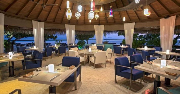 Restaurantul JAHAZ serveste mancăruri internationale si este disponibil la pranz si cină. Printre alte optiuni culinare se numără fructele de mare proaspete de la MEERU si mancărurile orientale de la JING.