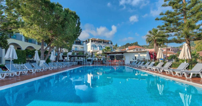 Facilitati hotel : receptie 24h, piscina, piscina pentru copii, loc de joaca pentru copii, snack bar, restaurant, gradina, WIFI, biblioteca, inchiriere bicicleta, biliard, babysitting/servicii pentru copi.