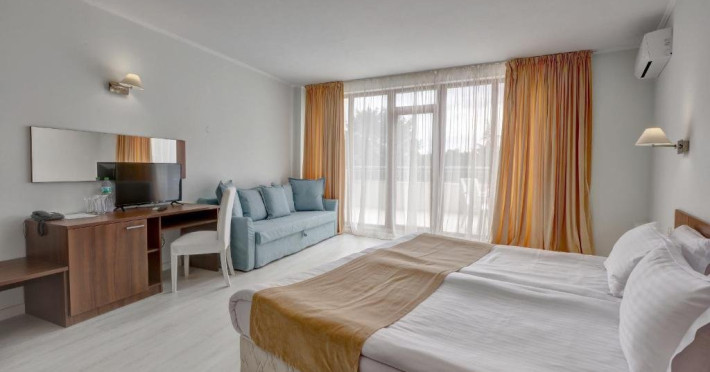 Localizare: Hotel Continental se afla in statiunea Nisipurile de Aur, la 400 de metri de plaja. Facilitati hotel: Hotelul pune la dispozitia turistilor bar, restaurant, piscina sezoniera in aer liber, centru de fitness, receptie deschisa non-stop, hamam, personal de divertisment, centrul spa si wellness, care include cada cu hidromasaj si sauna, gradina amenajata cu loc de joaca pentru copii, facilitati de gratar, tenis de masa si biliard. Dotari camere: Camerele sunt dotate cu aer conditionat, TV cu ecran plat cu canale prin satelit, birou, frigider, fierbator, uscator de par. Site web: https://hotelcontinental.bg/bg/