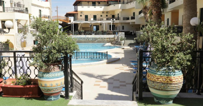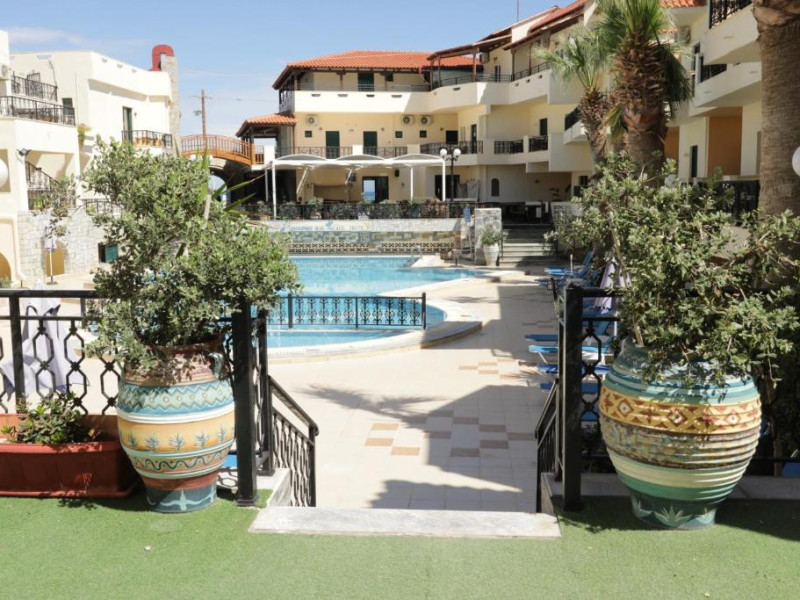 Restaurantul hotelului servește o serie de mancăruri cretane și mediteraneene. Barul de la piscină oferă gustări, cafea și băuturi. Maestrul-bucătar organizează seri grecești și demonstrații culinare, iar oaspeții se pot distra și la serile de karaoke.
