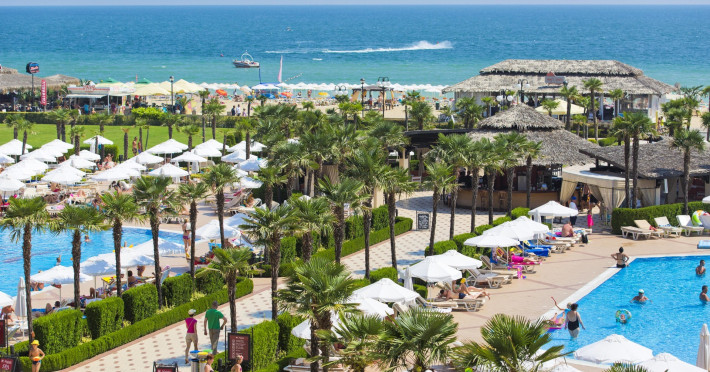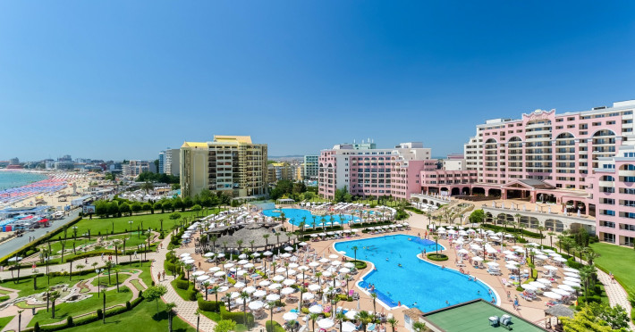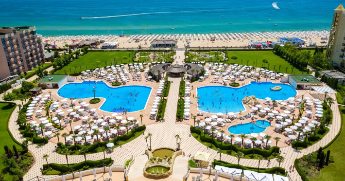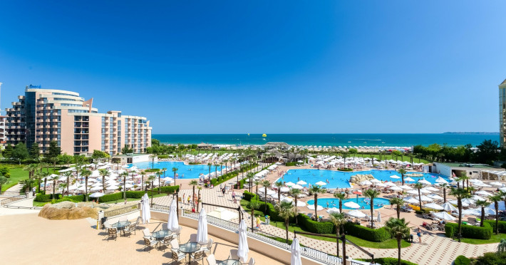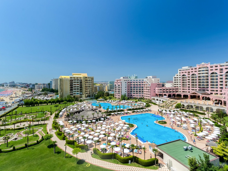 Hotelul DIT Majestic Beach Resort este situat in partea de nord a statiunii Sunny Beach. Hotelul este separat de o plaja frumoasa de nisip cu o intrare treptata in mare. Echipamentele si serviciile hotelului sunt la un nivel inalt. Complexul include o gradina mare cu 2 piscine mari, un bar si o piscina pentru copii. Facilitatile sportive includ, de asemenea, 2 terenuri de tenis, 2 terenuri de fotbal si baschet si un centru de fitness. Hotelul poate fi recomandat clientilor de toate categoriile de varsta care cauta o vacanta intr-un mediu plin de viata si cu activitati sportive. Hotelul poate fi recomandat si familiilor cu copii.