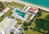 Βeach homes are built right up to the sand, palm trees sway in the sea breeze as beachcombers wander the shoreline, and young people lounge in swimsuits, soaking up the sun’s rays.