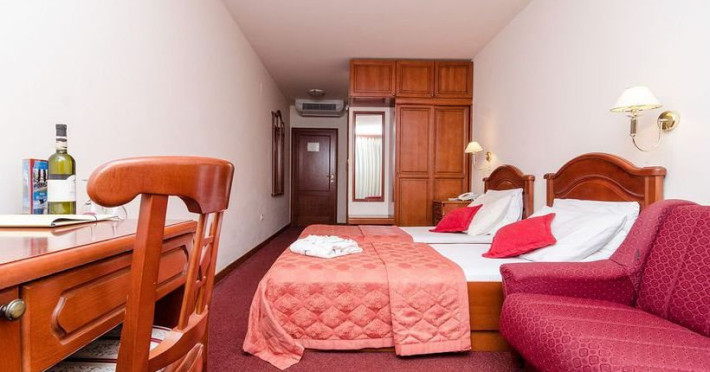 Dotari camere: Hotelul detine 22 de camere si 4 apartamente spatioase si confortabile, toate dotate cu aer conditionat, wifi, TV satelit, minibar, telefon, seif, frigider, baie cu dus sau cada si uscator de par.
