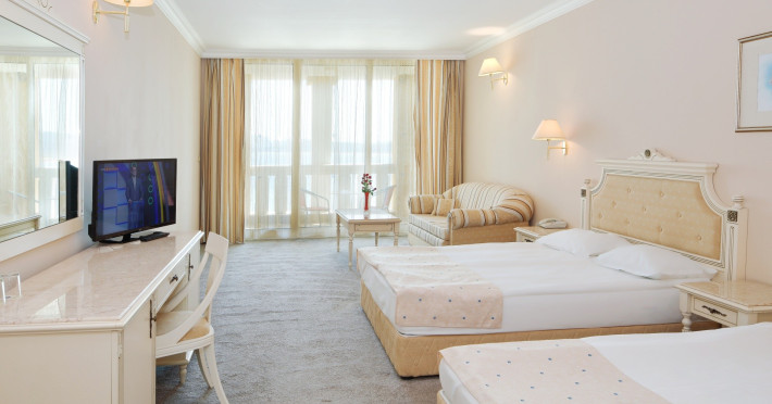 Oaspeții Hotelului Marina Beach pot folosi toate serviciile complexului Duni Royal Resort, cu excepția restaurantului principal, lobby bar, piscina exterioară și interioară a Hotelului Marina Royal Palace.