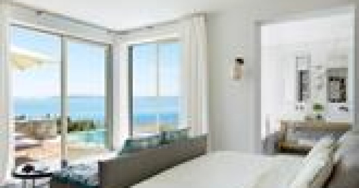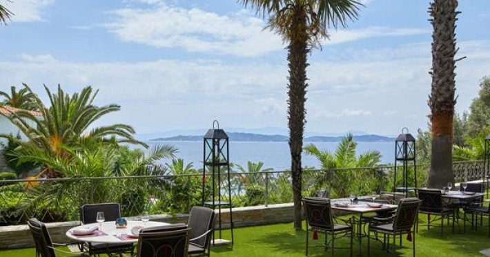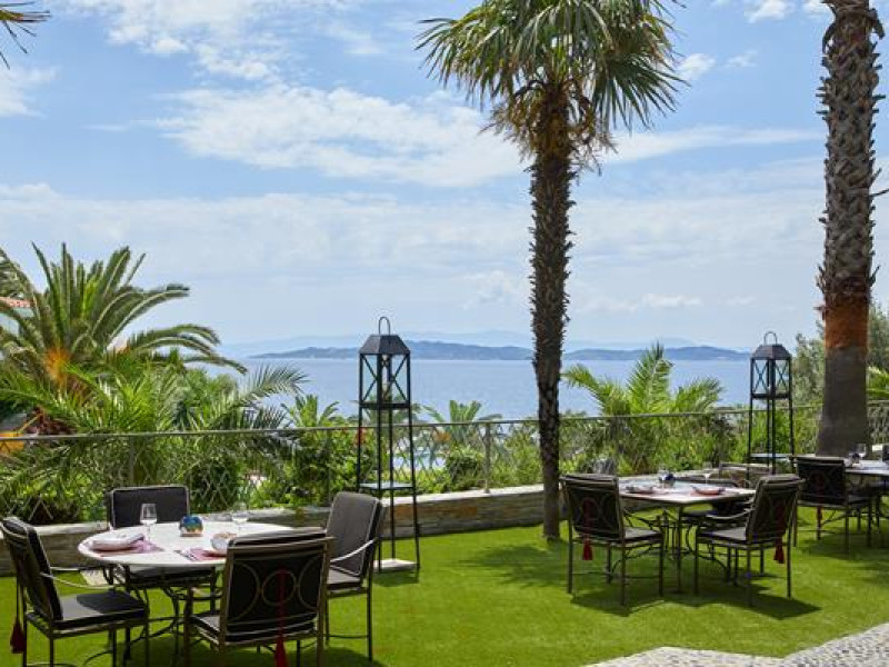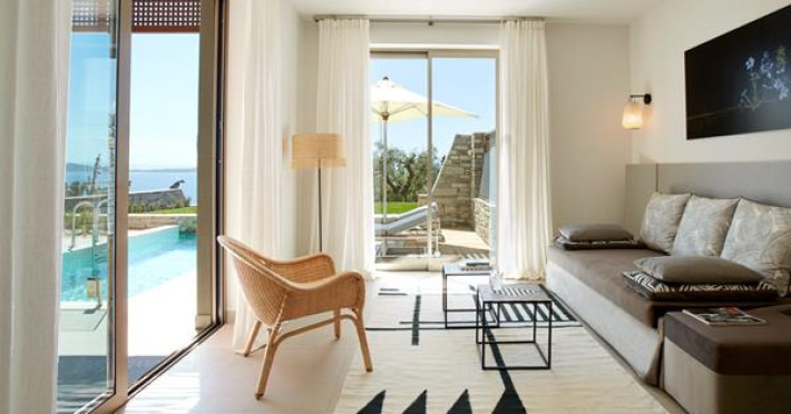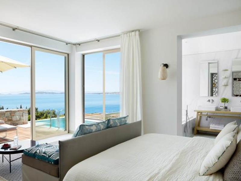 Eagles Villas is a family-owned, 5-star beach resort and member of Small Luxury Hotels of the World in Halkidiki, Greece, nestled on a hilltop amid lush Mediterranean gardens with stunning views of the Aegean. It features 42 stylish villas with heated private plunge pools and gardens, 24-hour room service and club car service.