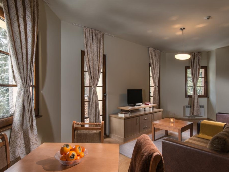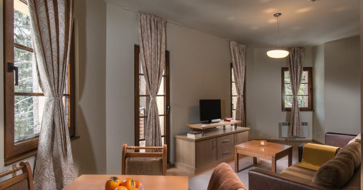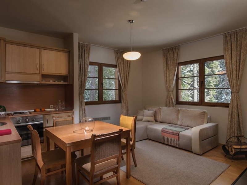 Localizare: Effect Malina Residence Hotel este situat in statiunea Pamporovo din regiunea Smolean, la 150 de metri de teleschiul Pamporovo. Dotari camere: Unitatile de cazare au WiFi, zona de luat masa si zona de relaxare cu TV. De asemenea, oaspetii au la dispozitie o chicineta utilata cu frigider, cuptor si plita. Contra cost turistii pot beneficia si de semineu.