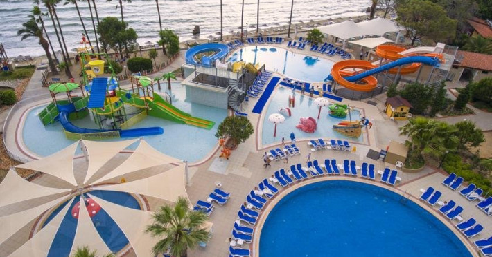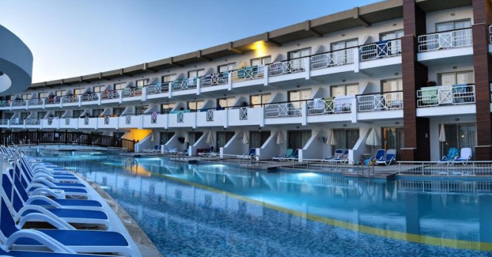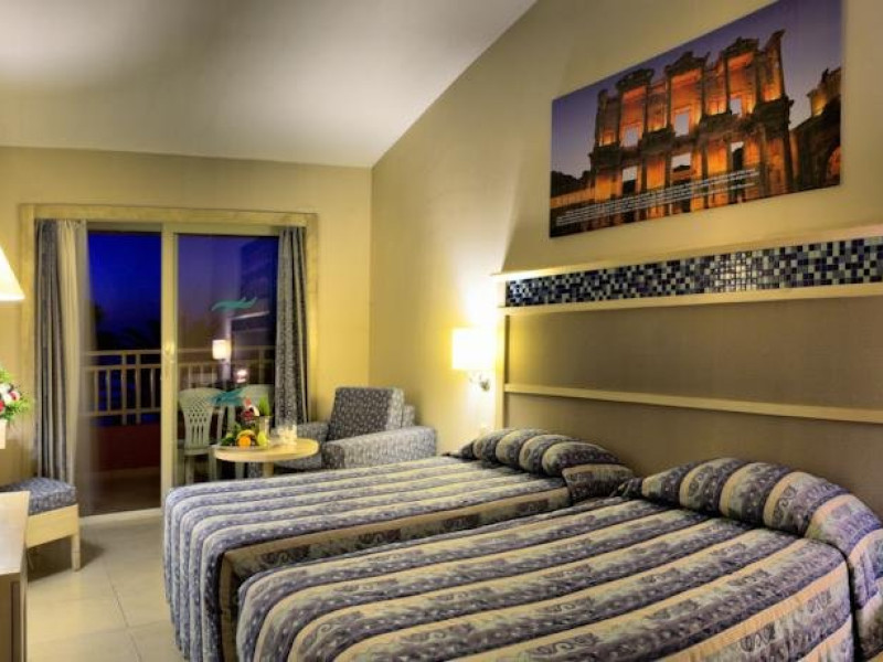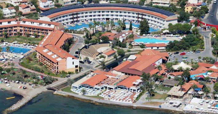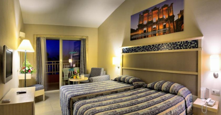 Descriere: Hotelul Ephesia Holiday Beach Club este localizat in unul dintre cele mai frumoase golfuri din Kusadasi si este foarte aproape de centrul orasului. Localizare: Hotelul se afla la 7 km de centrul orasului Kusadasi, iar Aeroportul Izmir Adnan Menderes este situat la 85 km. Ephesia Holiday Beach Club se afla pe malul Marii Egee si ofera o plaja cu nisip privata. Facilitati hotel: 5 piscine, 2 tobogane acvatice mari, 3 restaurante, un centru spa, parc de distractii pentru copiii cu varsta pana la 12 ani, mini-club pentru copiii cu varsta intre 4 si 12 ani, piscina incalzita pentru copiii cu varsta intre 2 si 6 ani, baie turceasca, sauna, teren de tenis, centru de fitness. Dotari camere: aer conditionat, balcon sau terasa, baie cu cada sau dus, articole de toaleta Website: www.ephesiahotel.com/
