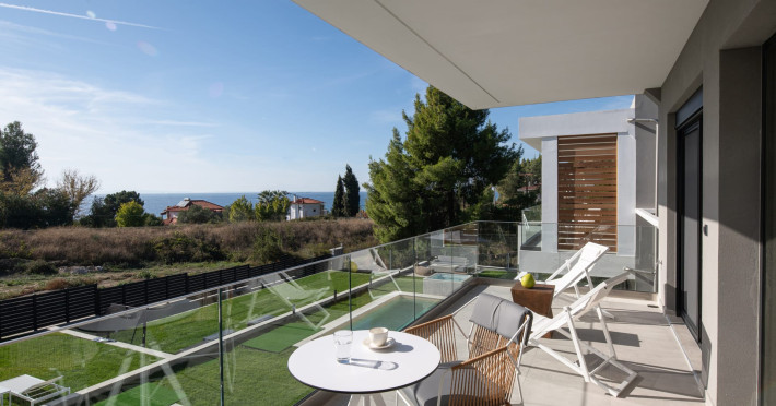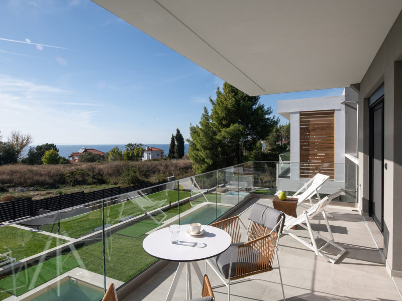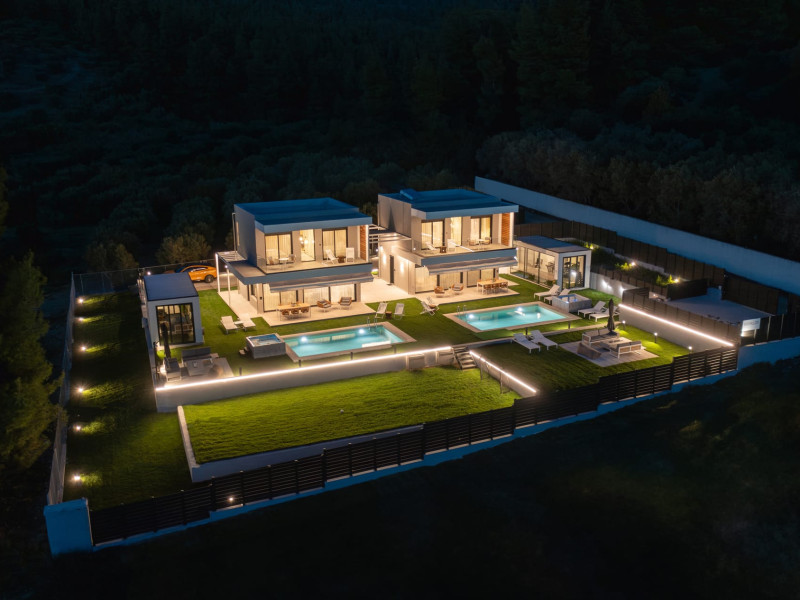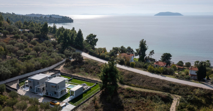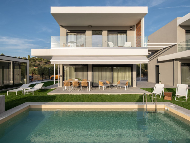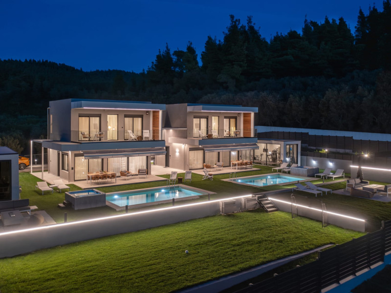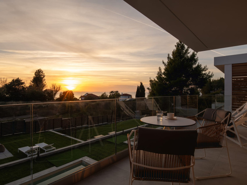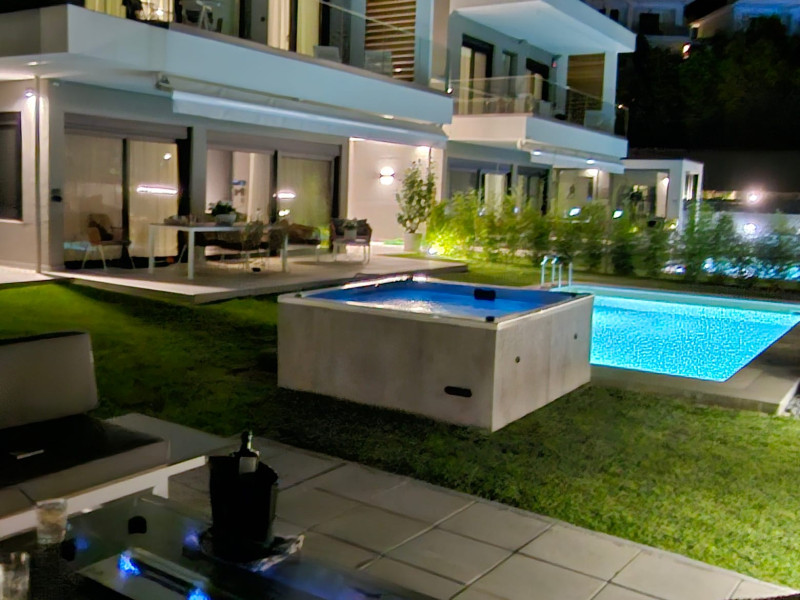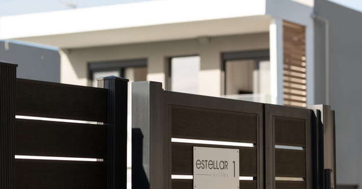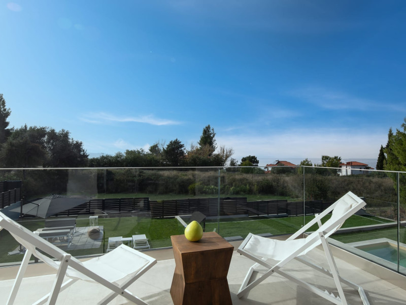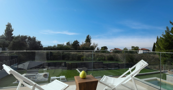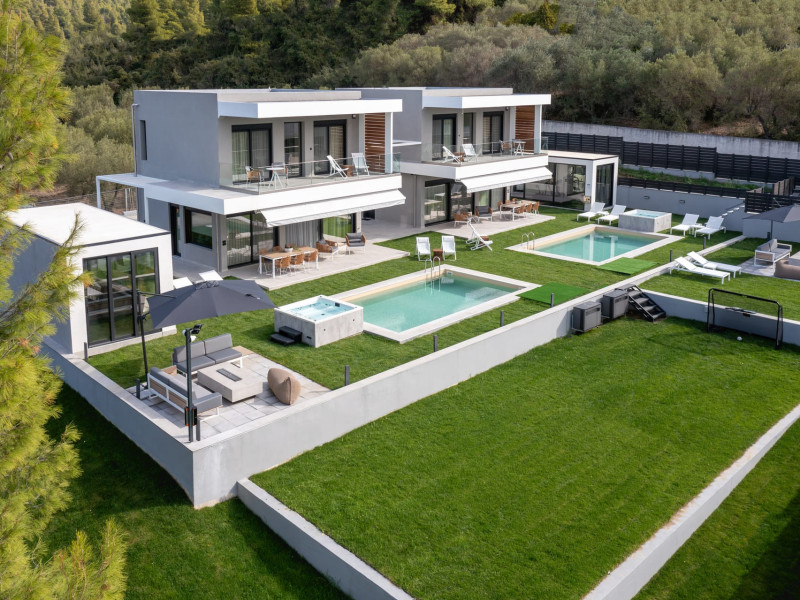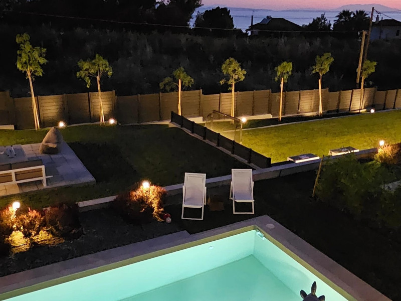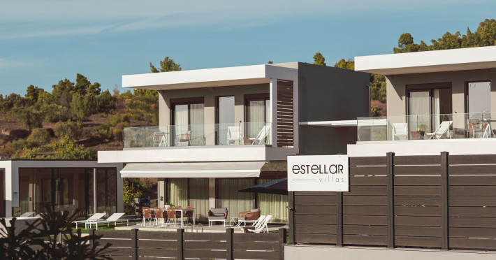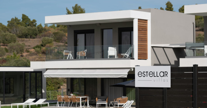 Estellar Villas has 2 completely separate buildings of 135m² each. We have excellent Sea view and the distance from the sea is 50m. Each Villa has: 2 Bedrooms, 1 living room, 1 bathroom, 1WC, Kitchen. Occupancy:6 adults max. Bedroom1: 17m² with King size bed (180*200cm)Flat screen TV, VIP amenities, Free Wi-Fi, Air conditioning with ionizer, Safe Deposit Box, Sea view, balcony, mosquito nets at the window-doors. Bedroom2: 15m² with King size bed (180*200cm), Flat screen TV, VIP amenities, Free Wi-Fi, Air conditioning with ionizer, nbsp;Sea view, balcony, mosquito nets at the window-doors. Bathroom: Located on the 1st floor, Rainfall shower head, free WiFi. Bathtub, Heating, Hairdryer, WC, mountain view through windows. Solar water heating. WC: Located in the ground floor. Living room: Flat Tv, Free wifi, fireplace bioethanol, mosquito nets at the window-doors, Sofabed (160*200cm), Air conditioning with ionizer, nbsp;Sea and garden with pool view, dinning room. Kitchen: Big refrigerator, Nespresso machine, oven, microwave, water boiler, all cooking utensils, Air conditioning, mountain view. Solar water heating. Garden: Free WiFi, Private temperate pool 28m² UV, sunbeds, nbsp;Jacuzzi for 5persons, Private Gym 21m² with strength and aerobic fitness equipment and flat Tv, Shower, Private garden up to 700m² with flowers and lawn, garden living room with fireplace bioethanol, free place with lawn for soccer with goalpost. Parking area: for free parking till two cars, electric car charger available with kWh charge, bicycles with free use.