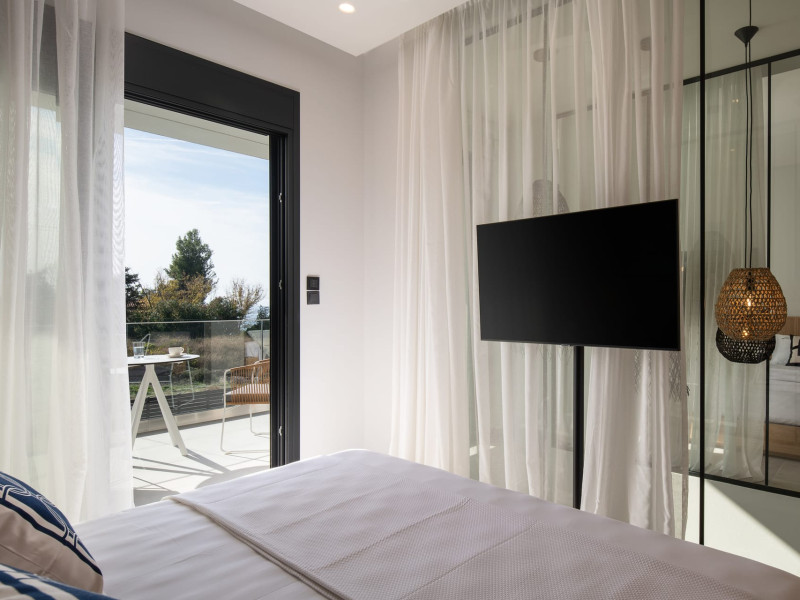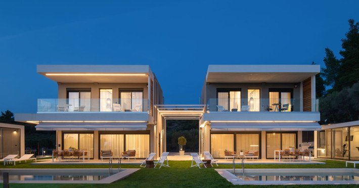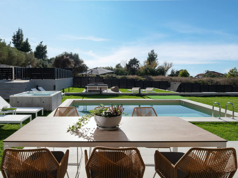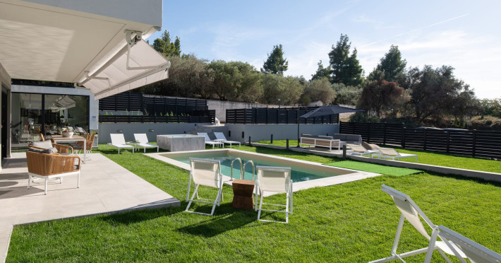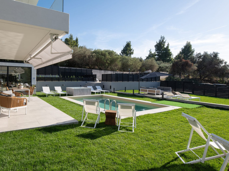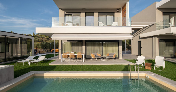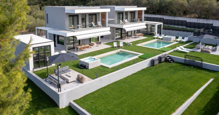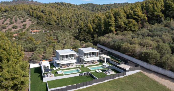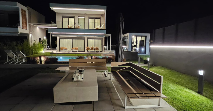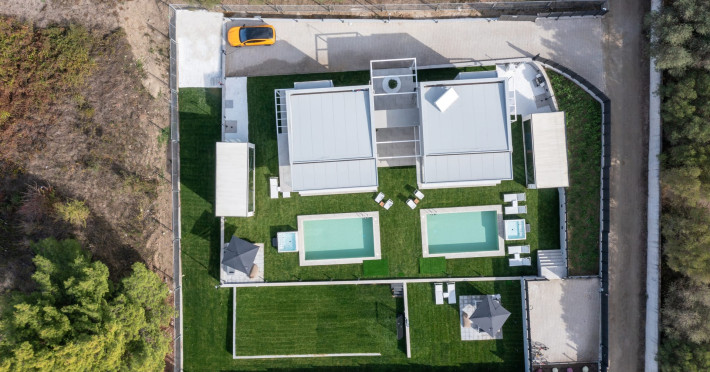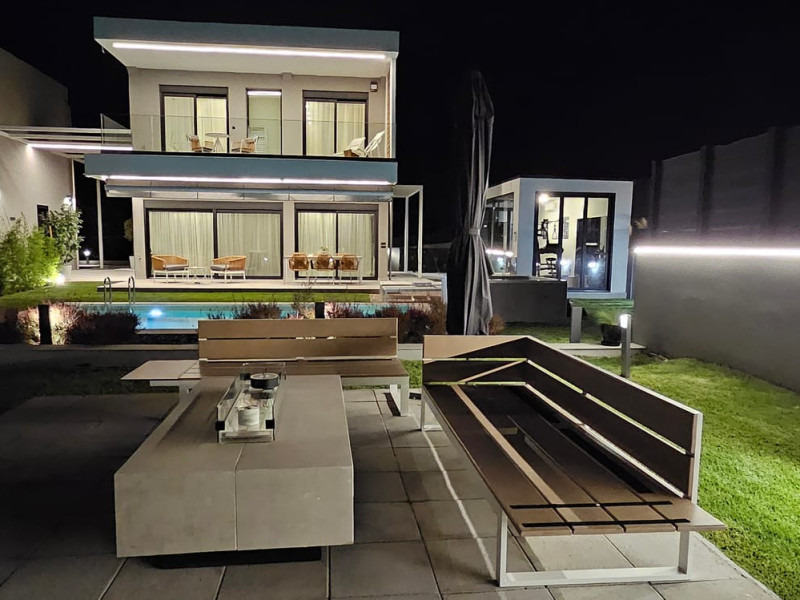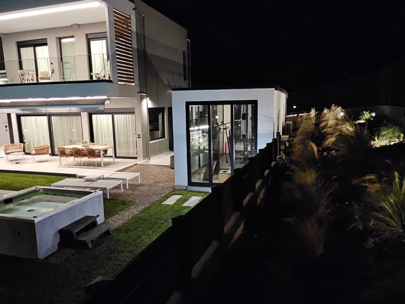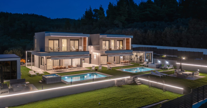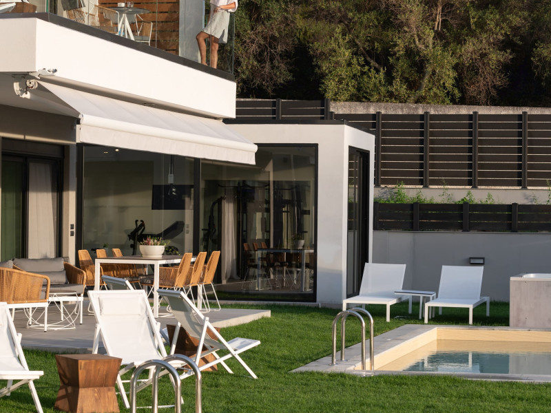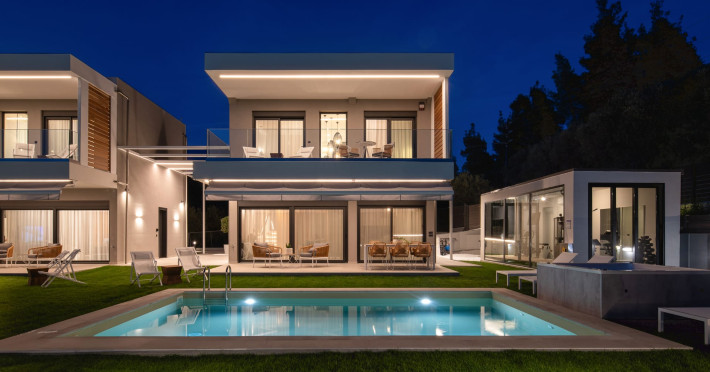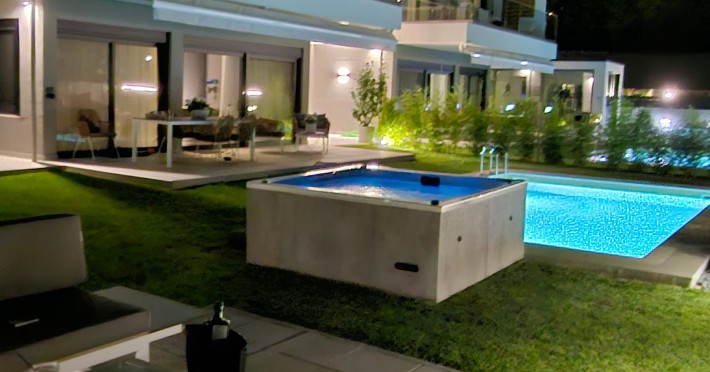 Estellar Villas has 2 completely separate buildings of 135m² each. We have excellent Sea view and the distance from the sea is 50m. Each Villa has: 2 Bedrooms, 1 living room, 1 bathroom, 1WC, Kitchen. Occupancy:6 adults max. Bedroom1: 17m² with King size bed (180*200cm)Flat screen TV, VIP amenities, Free Wi-Fi, Air conditioning with ionizer, Safe Deposit Box, Sea view, balcony, mosquito nets at the window-doors. Bedroom2: 15m² with King size bed (180*200cm), Flat screen TV, VIP amenities, Free Wi-Fi, Air conditioning with ionizer, nbsp;Sea view, balcony, mosquito nets at the window-doors. Bathroom: Located on the 1st floor, Rainfall shower head, free WiFi. Bathtub, Heating, Hairdryer, WC, mountain view through windows. Solar water heating. WC: Located in the ground floor. Living room: Flat Tv, Free wifi, fireplace bioethanol, mosquito nets at the window-doors, Sofabed (160*200cm), Air conditioning with ionizer, nbsp;Sea and garden with pool view, dinning room. Kitchen: Big refrigerator, Nespresso machine, oven, microwave, water boiler, all cooking utensils, Air conditioning, mountain view. Solar water heating. Garden: Free WiFi, Private temperate pool 28m² UV, sunbeds, nbsp;Jacuzzi for 5persons, Private Gym 21m² with strength and aerobic fitness equipment and flat Tv, Shower, Private garden up to 700m² with flowers and lawn, garden living room with fireplace bioethanol, free place with lawn for soccer with goalpost. Parking area: for free parking till two cars, electric car charger available with kWh charge, bicycles with free use.