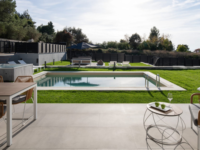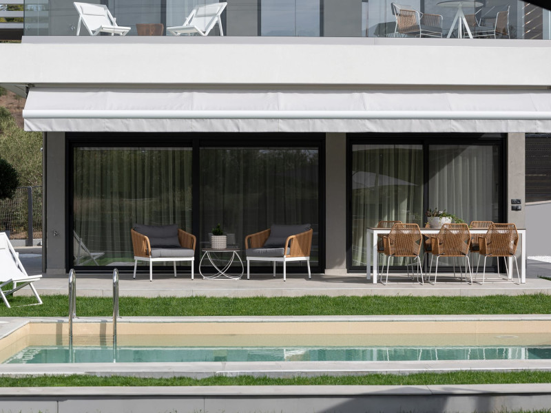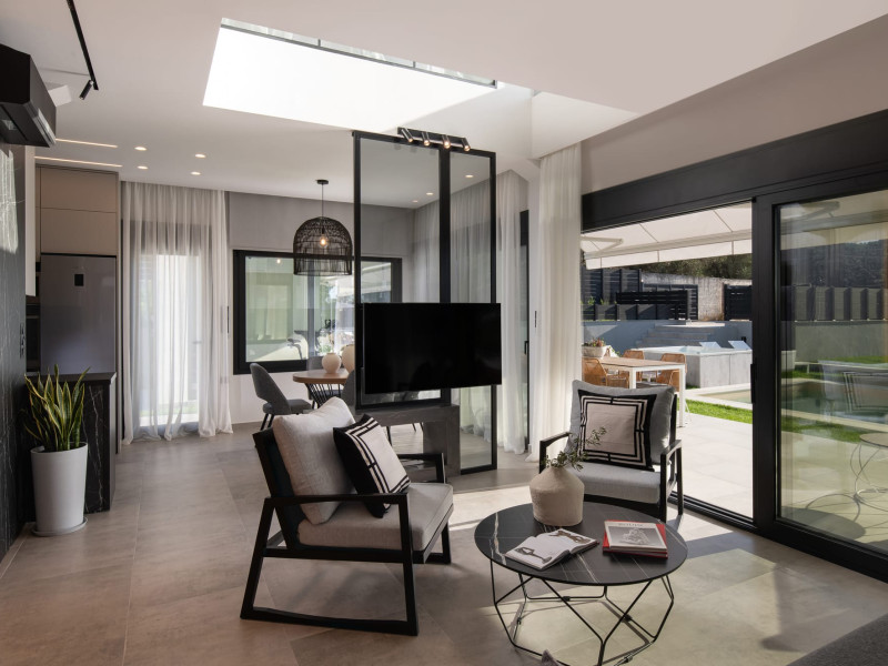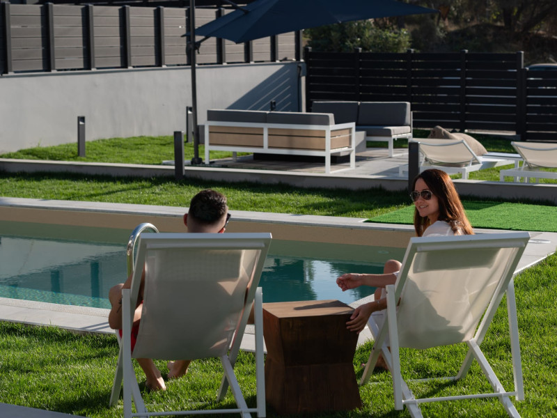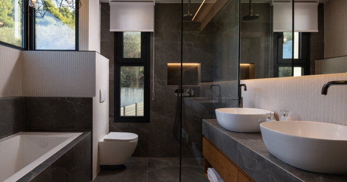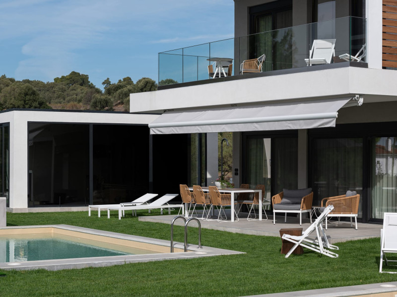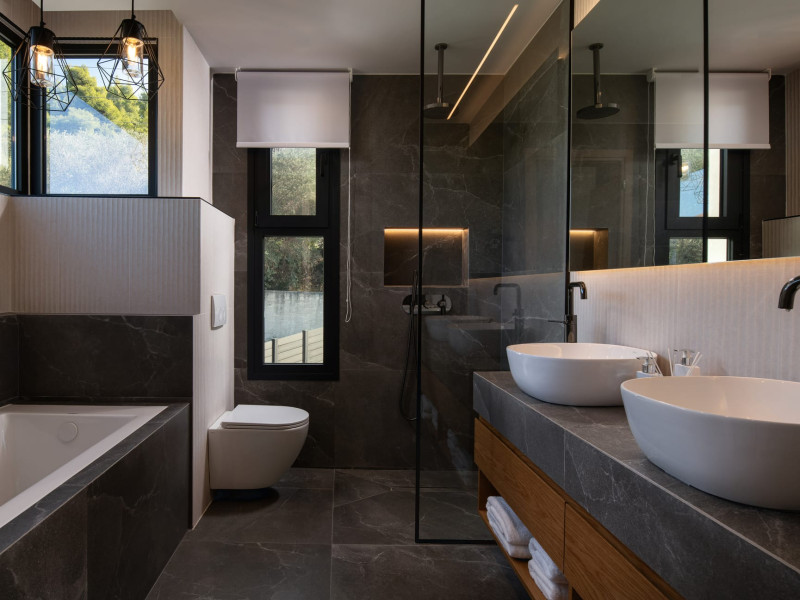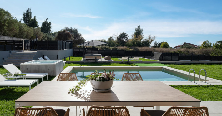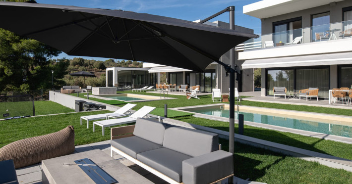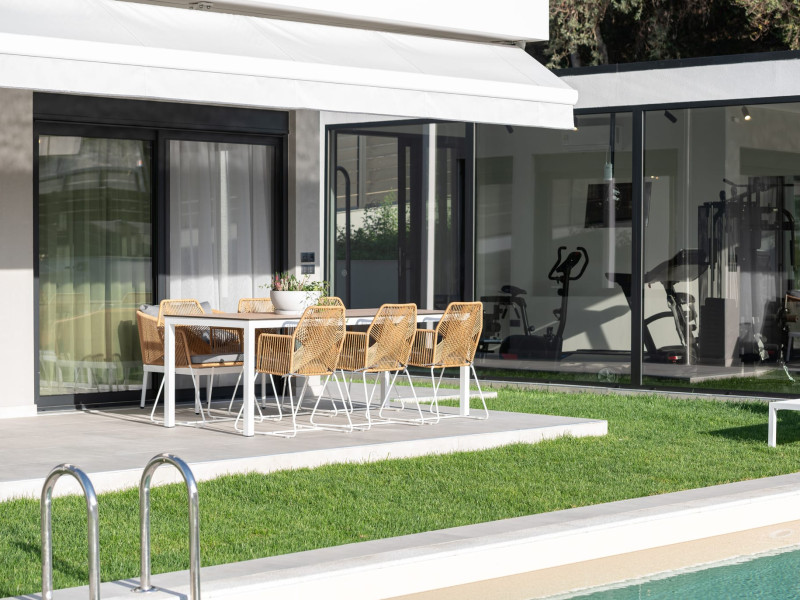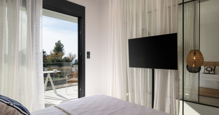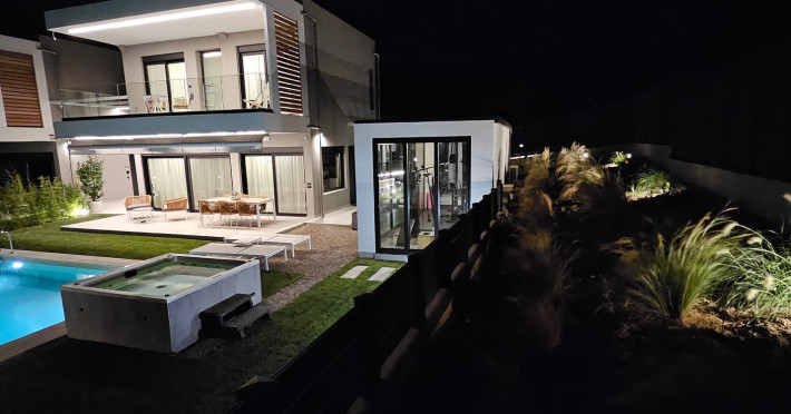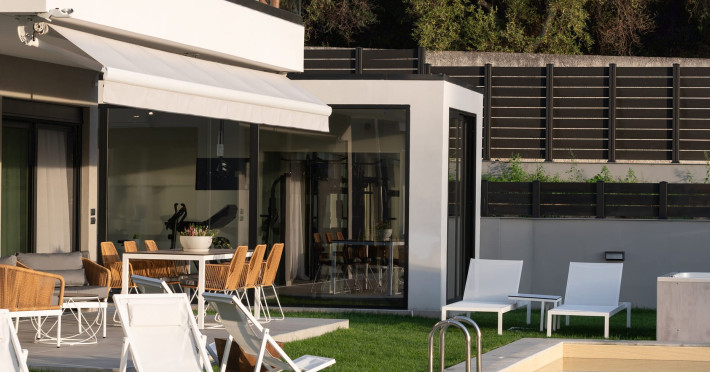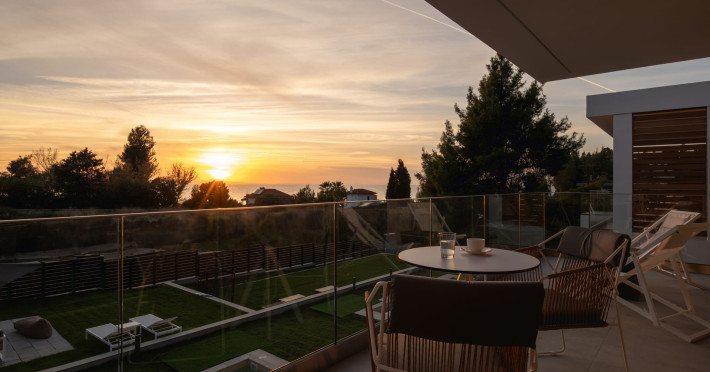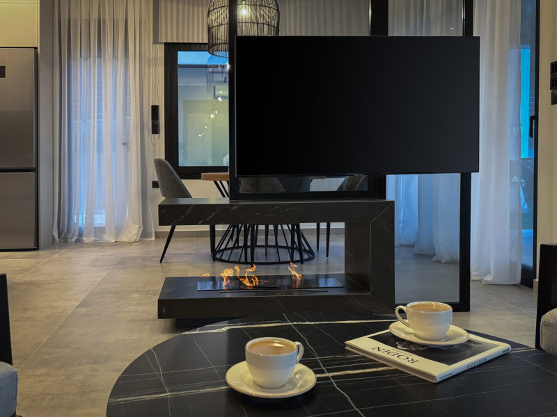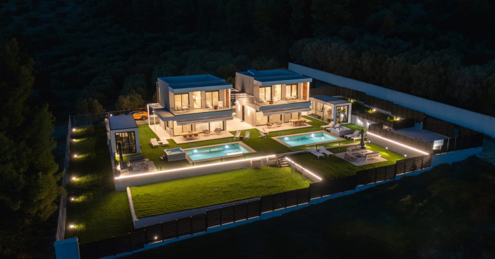 Estellar Villas has 2 completely separate buildings of 135m² each. We have excellent Sea view and the distance from the sea is 50m. Each Villa has: 2 Bedrooms, 1 living room, 1 bathroom, 1WC, Kitchen. Occupancy:6 adults max. Bedroom1: 17m² with King size bed (180*200cm)Flat screen TV, VIP amenities, Free Wi-Fi, Air conditioning with ionizer, Safe Deposit Box, Sea view, balcony, mosquito nets at the window-doors. Bedroom2: 15m² with King size bed (180*200cm), Flat screen TV, VIP amenities, Free Wi-Fi, Air conditioning with ionizer, nbsp;Sea view, balcony, mosquito nets at the window-doors. Bathroom: Located on the 1st floor, Rainfall shower head, free WiFi. Bathtub, Heating, Hairdryer, WC, mountain view through windows. Solar water heating. WC: Located in the ground floor. Living room: Flat Tv, Free wifi, fireplace bioethanol, mosquito nets at the window-doors, Sofabed (160*200cm), Air conditioning with ionizer, nbsp;Sea and garden with pool view, dinning room. Kitchen: Big refrigerator, Nespresso machine, oven, microwave, water boiler, all cooking utensils, Air conditioning, mountain view. Solar water heating. Garden: Free WiFi, Private temperate pool 28m² UV, sunbeds, nbsp;Jacuzzi for 5persons, Private Gym 21m² with strength and aerobic fitness equipment and flat Tv, Shower, Private garden up to 700m² with flowers and lawn, garden living room with fireplace bioethanol, free place with lawn for soccer with goalpost. Parking area: for free parking till two cars, electric car charger available with kWh charge, bicycles with free use.