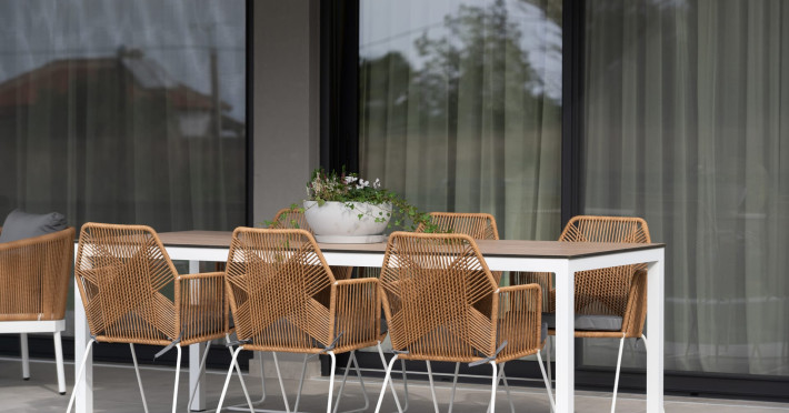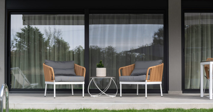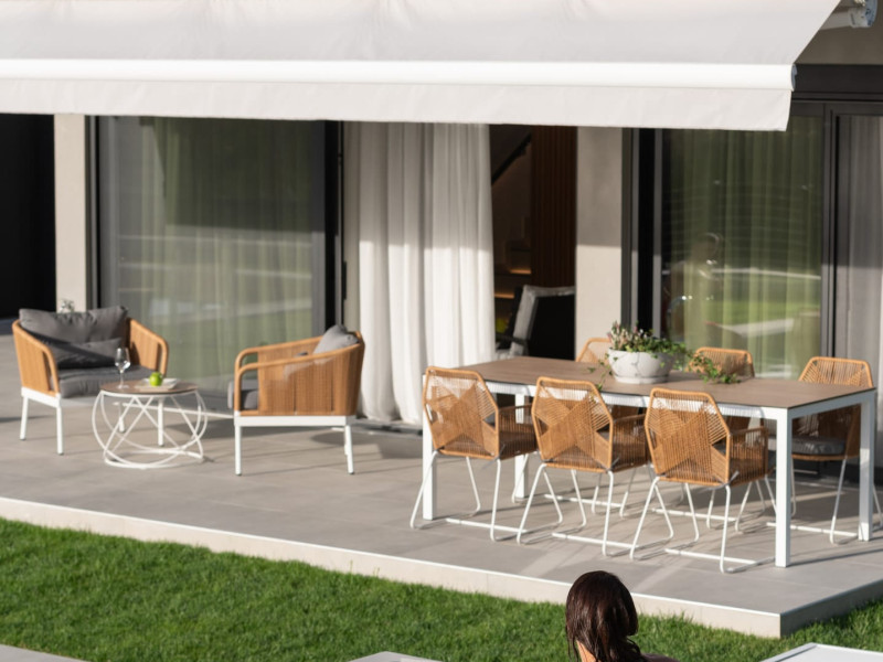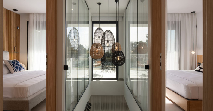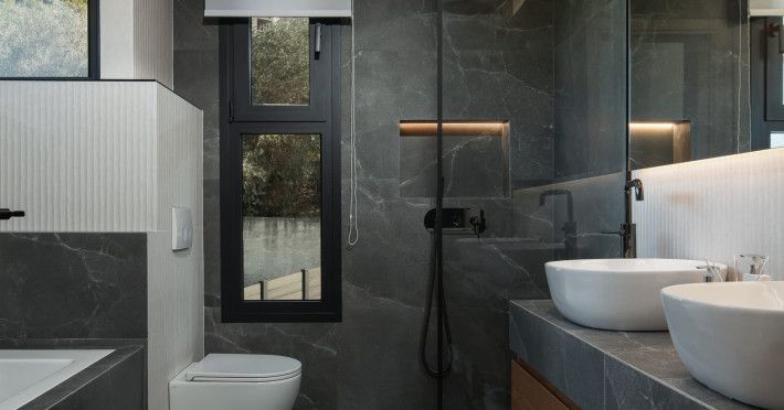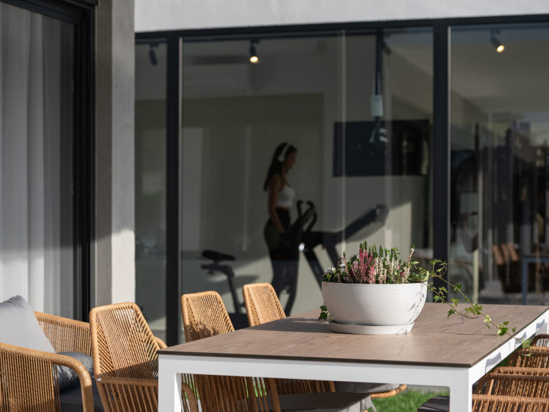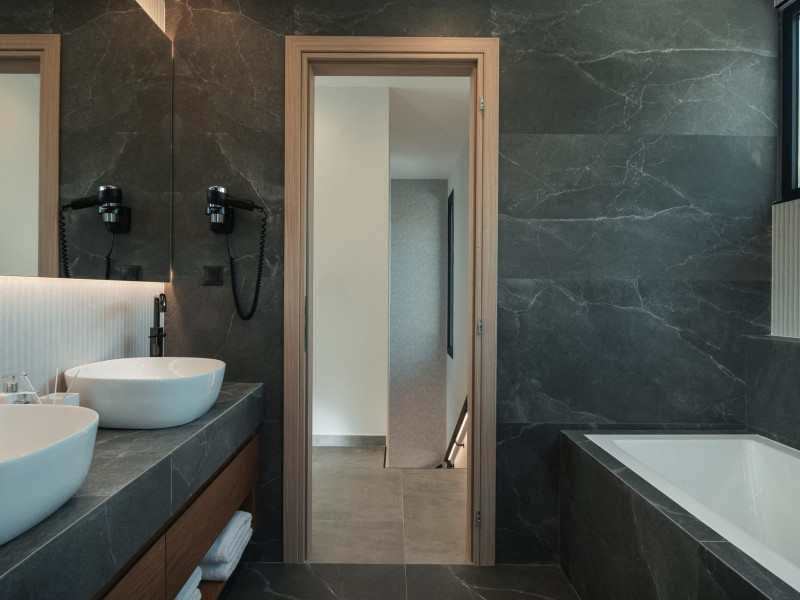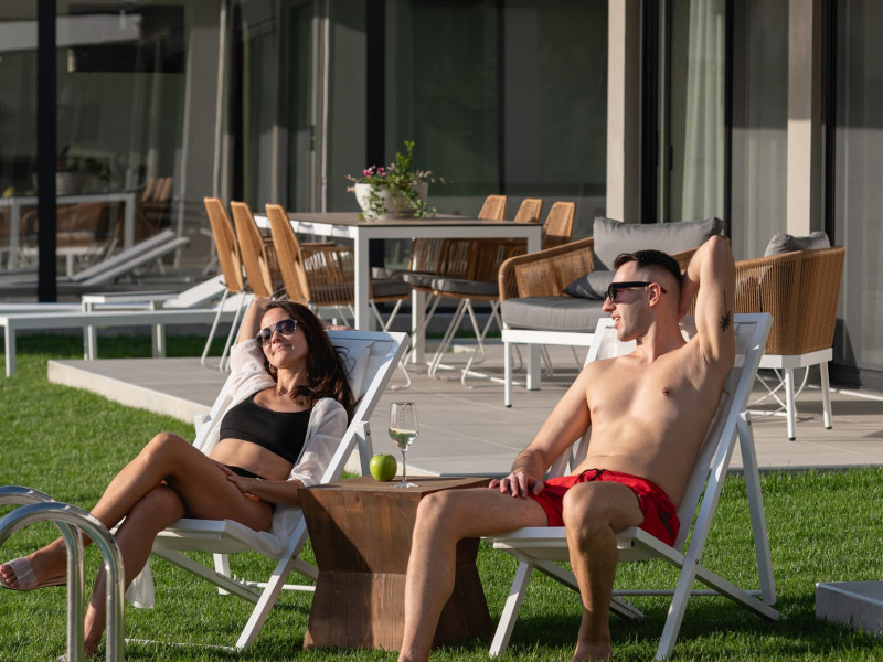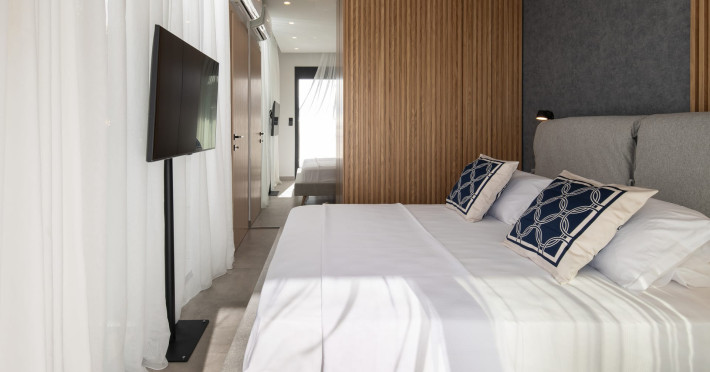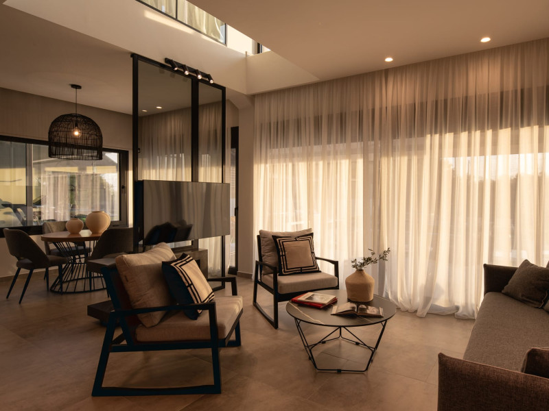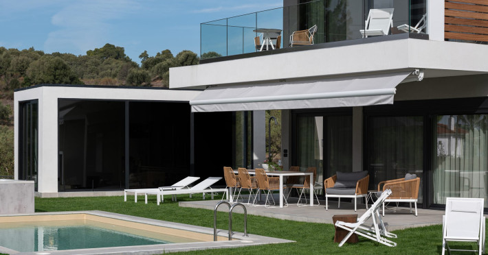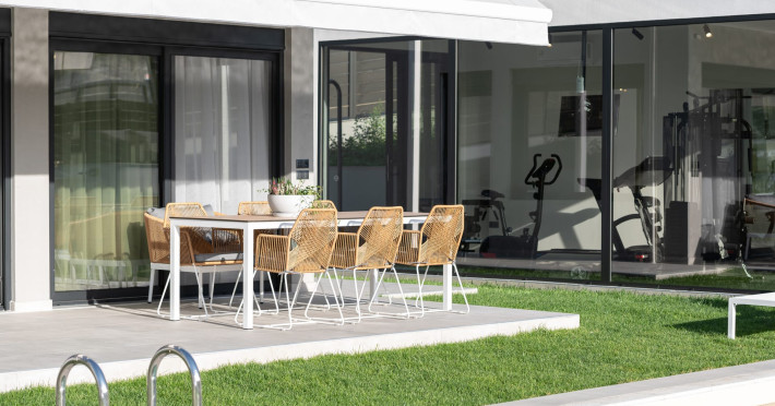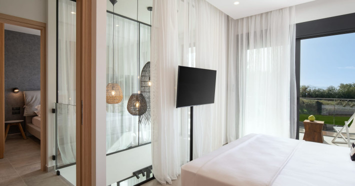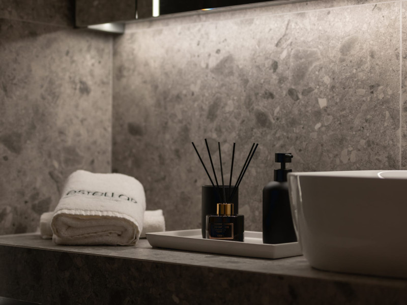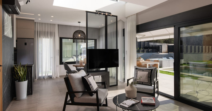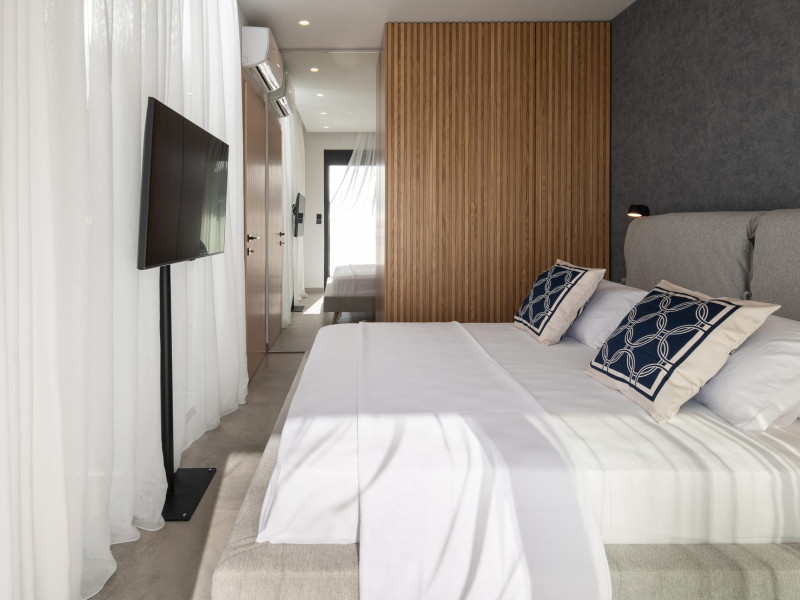 Estellar Villas has 2 completely separate buildings of 135m² each. We have excellent Sea view and the distance from the sea is 50m. Each Villa has: 2 Bedrooms, 1 living room, 1 bathroom, 1WC, Kitchen. Occupancy:6 adults max. Bedroom1: 17m² with King size bed (180*200cm)Flat screen TV, VIP amenities, Free Wi-Fi, Air conditioning with ionizer, Safe Deposit Box, Sea view, balcony, mosquito nets at the window-doors. Bedroom2: 15m² with King size bed (180*200cm), Flat screen TV, VIP amenities, Free Wi-Fi, Air conditioning with ionizer, nbsp;Sea view, balcony, mosquito nets at the window-doors. Bathroom: Located on the 1st floor, Rainfall shower head, free WiFi. Bathtub, Heating, Hairdryer, WC, mountain view through windows. Solar water heating. WC: Located in the ground floor. Living room: Flat Tv, Free wifi, fireplace bioethanol, mosquito nets at the window-doors, Sofabed (160*200cm), Air conditioning with ionizer, nbsp;Sea and garden with pool view, dinning room. Kitchen: Big refrigerator, Nespresso machine, oven, microwave, water boiler, all cooking utensils, Air conditioning, mountain view. Solar water heating. Garden: Free WiFi, Private temperate pool 28m² UV, sunbeds, nbsp;Jacuzzi for 5persons, Private Gym 21m² with strength and aerobic fitness equipment and flat Tv, Shower, Private garden up to 700m² with flowers and lawn, garden living room with fireplace bioethanol, free place with lawn for soccer with goalpost. Parking area: for free parking till two cars, electric car charger available with kWh charge, bicycles with free use.