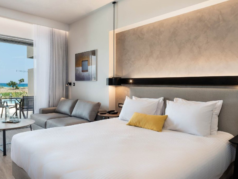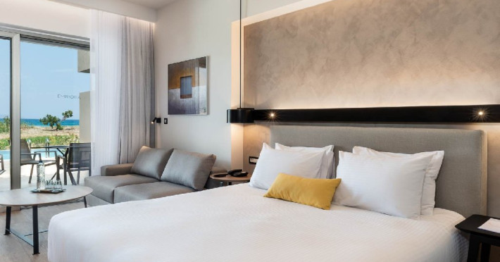 Descriere: Un resort modern, deschis in vara anului 2018. Detine un parc acvatic pentru adulti si copii. Localizare: pe plaja din zona Kolymbari, la 23 km de orasul Chania. Plaja: cu pietricele, in fata resortului. Sezlongurile pe plaja sunt gratuite pentru oaspetii hotelului. Dotari camere: Camerele au un aspect modern si sunt dotate cu televizor, telefon, acces internet WiFi (gratuit), aer conditionat, facilitati pentru ceai/cafea, esperssor (2 capsule gratuite la sosire; capsulele suplimentare sunt contra cost), mini frigider, seif electronic (gratuit), uscator de par, cantar, halate si papuci de baie.Facilitati hotel: restaurant principal bufet pentru mic dejun, pranz si cina, restaurante a la carte, snack bar, bar principal, bar pe plaja, piscina (una dintre cele mai mari din Grecia), prosoape de plaja gratuite, centru spa cu piscina interioara incalzita (accesul copiilor sub 16 ani este interzis in centrul spa). Activitati: 2 terenuri de tenis, teren de mini fotbal 13 x 23, Yoga, Pilates, Aqua Gym, volei pe plaja, centru fitness. Facilitati pentru copii: cluburi pentru copii separate pe grupe de varsta, babysitting (la cerere, contra cost), parc acvatic cu tobogane. Pentru anumite facilitati din hotel sau din camera, hotelierul poate solicita taxe suplimentare. In momentul sosirii la hotel solicitati receptionerului sa va informeze cu exactitate asupra lor. Web site: www.euphoriaresort.gr/ Taxa de statiune obligatorie - se plateste la receptie