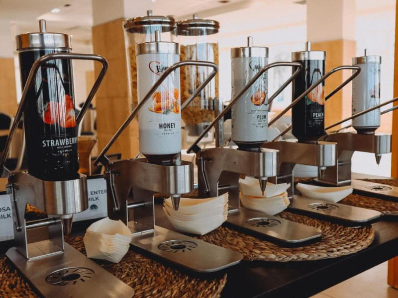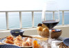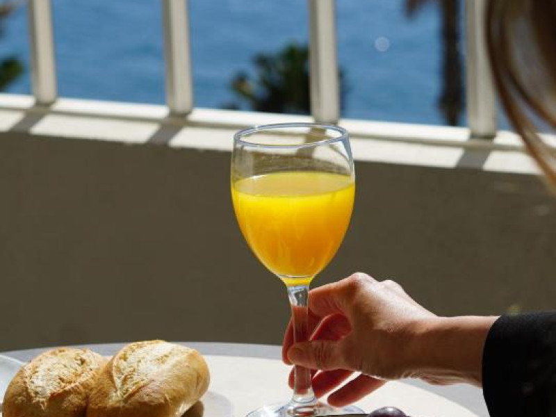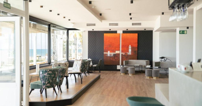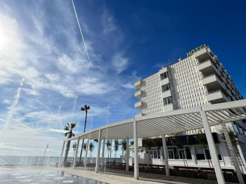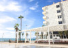 Cafeneaua cu terasă a Hotelului Fay Victoria Beach este situată chiar pe promenada de pe malul mării.