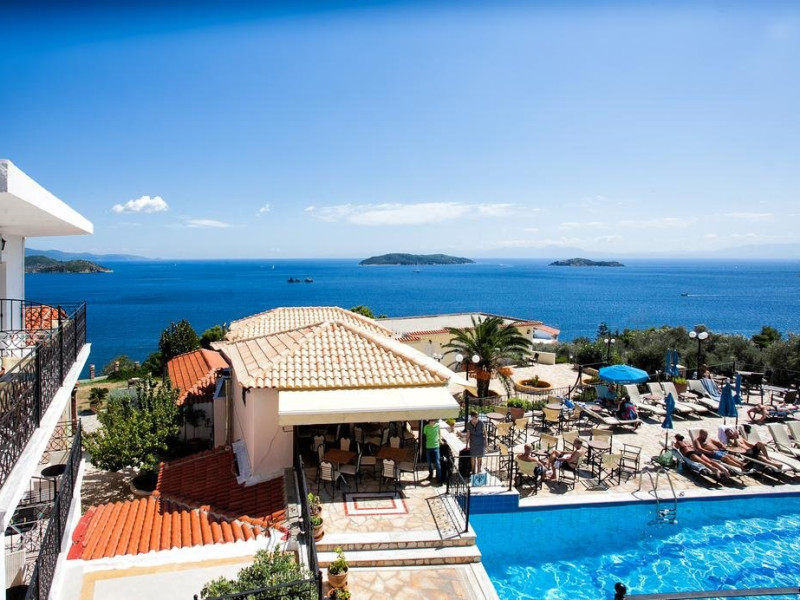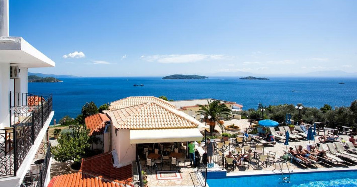 Descriere: Hotelul Fiorella Sea View este localizat langa faimoasa plaja din Megali Ammos si este inconjurat de natura, de maslini si pini. Localizare: Aeroportul Skiathos este la 5 km departare de hotel, iar plaja la 4 minute de mers pe jos, in Megali Ammos. Dotari camere: balcon, terasa, TV, telefon, seif, aer conditionat, birou, intrare privata, garderoba/dulap, dus, uscator de par, toaleta, baie, hartie igienica, frigider, prosoape, lenjerie de pat Facilitati hotel: gradina, piscina exterioara, parcare privata, bar