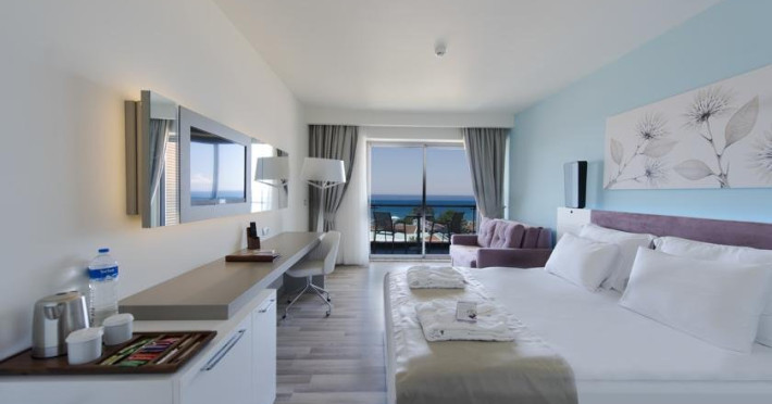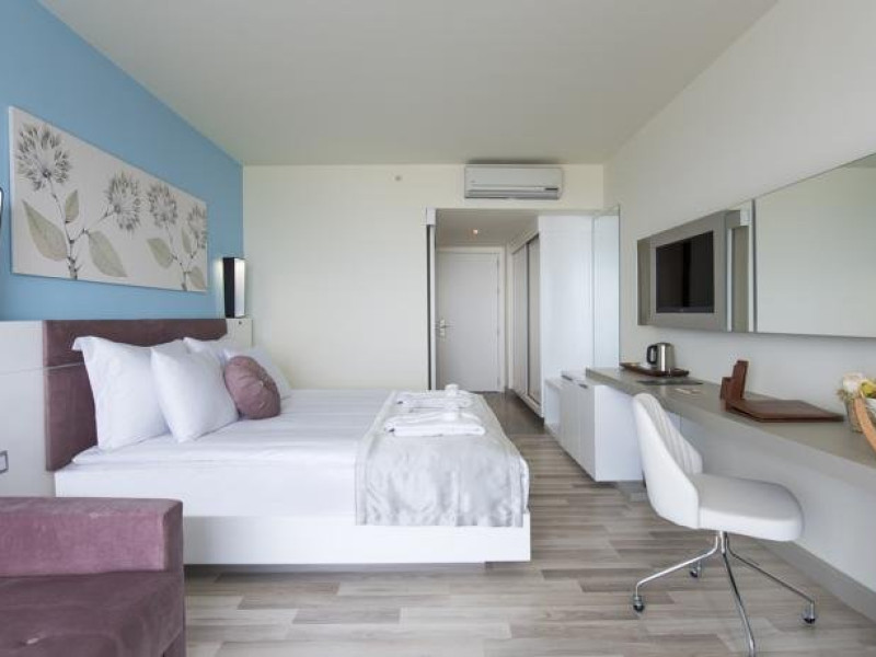 Descriere: Hotelul Flora Garden Ephesus Kusadasi este situat la malul marii si are o plaja cu nisip privata, certificata cu steag albastru si amenajata cu sezlonguri, umbrele de soare si prosoape gratuite. Localizare: Centrul orasului Kusadasi este la 15 km de proprietate, iar orasul Efes se afla la 35 km. Hotelul este la 40 km de Casa Fecioarei Maria. Aeroportul Izmir Adnan Menderes este la 92 km, iar Aeroportul Milas-Bodrum se afla la 112 km de hotel. Plaja este la 10 minute de mers pe jos de hotel. Facilitati hotel: piscina interioara, piscina exterioara, centru de fitnesss, teren de tenis, sauna, club pentru copii, loc de joaca, piscina pentru copii, restaurant, bar. Dotari camere: parchet sau mocheta, internet wireless gratuit, TV cu ecran plat, aer conditionat, minibar. Website: www.floragardenhotels.com