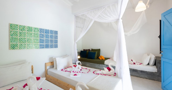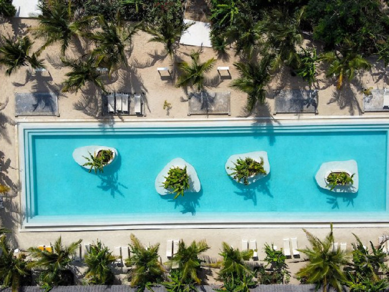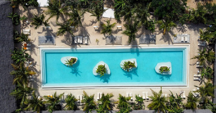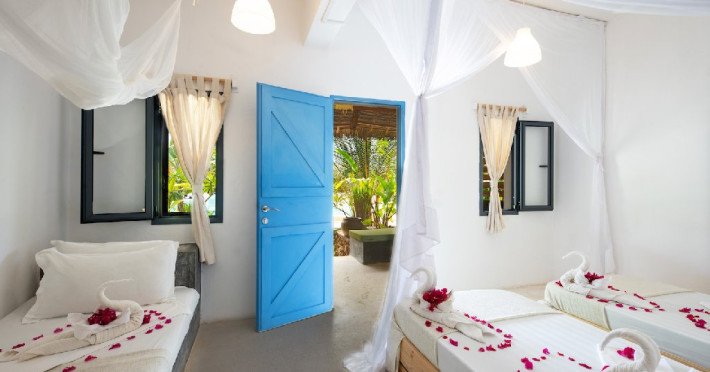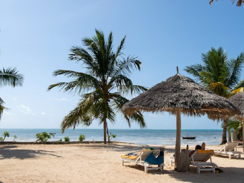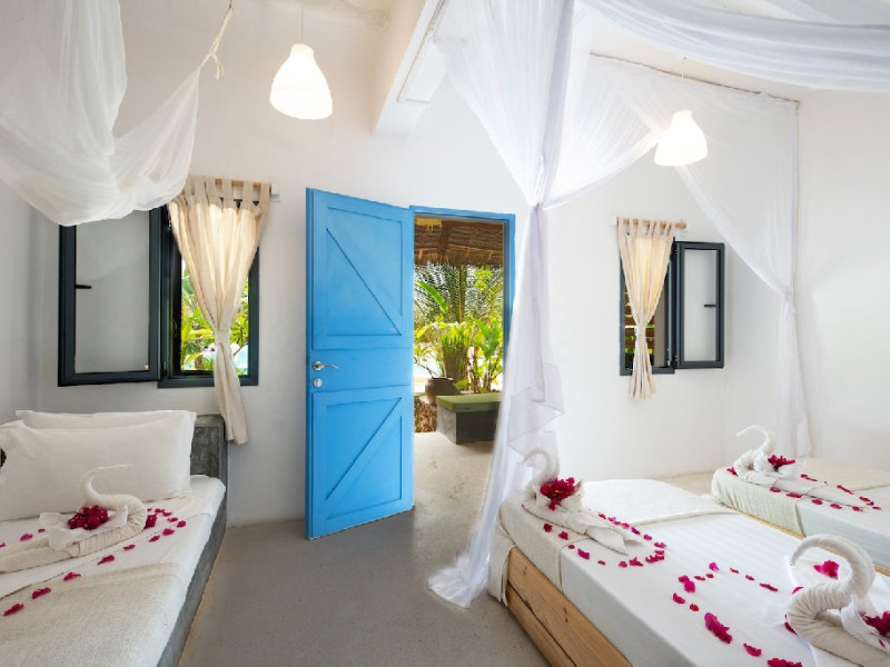 Localizare Proprietatea este localizata pe malul marii, intre statiunile Jambiani si Paje, la aproximativ 54 km est fata de cel mai apropiat aeroport - Aeroportul International Abeid Amani Karume Zanzibar (ZNZ).