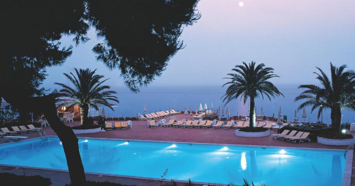 Baia Verde este inconjurat de o grădină cu palmieri și pini și o piscină semi-olimpică. Are o terasă insorită construită in stanci, care prezintă o scară care coboară spre mare.