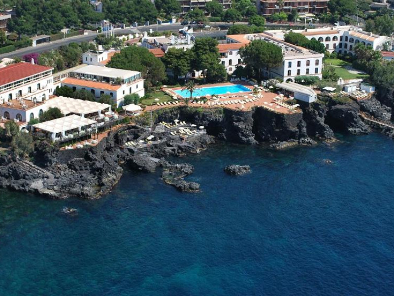 Grand Hotel Baia Verde, de 4 stele, este situat pe stanci vulcanice, cu vedere la un golf natural, pe drumul dintre Acicastello și Catania. Acesta oferă o piscină in aer liber și o sală de sport gratuită.