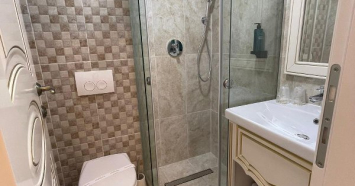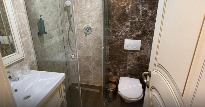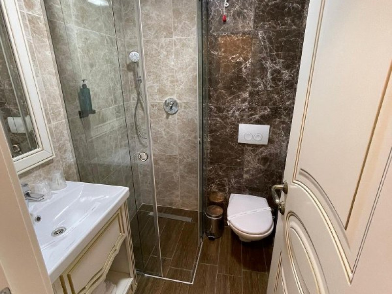 Apartamentul are o suprafata generoasa de 36 mp si este impartit in 3 zone. Dormitor, Living open space si terasa cu vedere si iesire directa la zona de piscine si curtea interioara a resortului. Dormitorul este mochetat, dotat cu pat matrimonial (160/200), noptiere, TV LCD, AC, seif, baie cu cabina de dus. Livingul beneficiaza de o canapea extensibila. Terasa spatioasa este dotata cu masuta, 4 scaune si un sezlong.