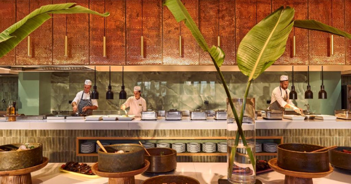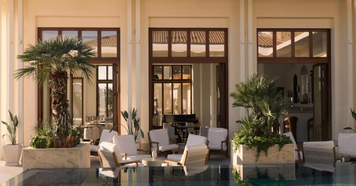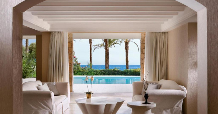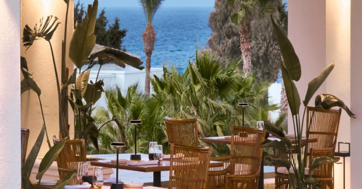 Oaspeții Grecotel pot alege intre bucătărie mediteraneană, fructe de mare proaspete și gusturi tradiționale grecești. Barul principal și barul de pe plajă servesc băuturi și cocktailuri in saloane coloniale și terase cu vedere la mare.