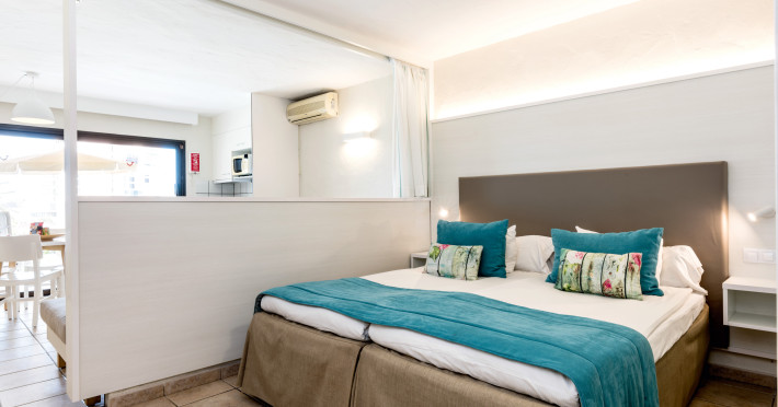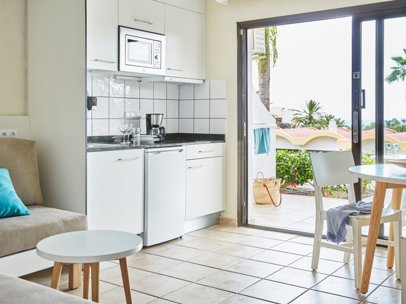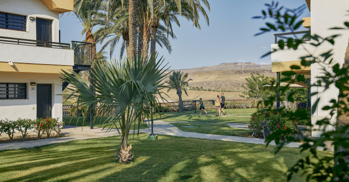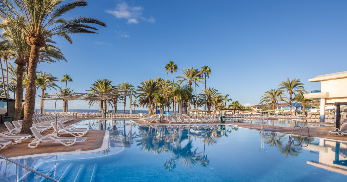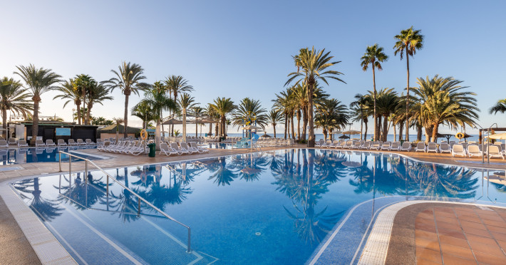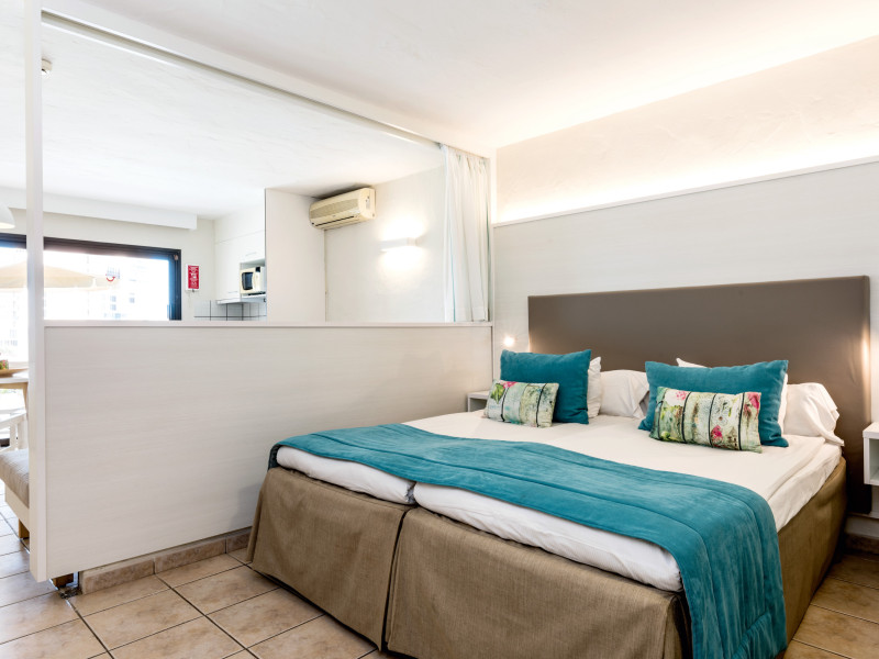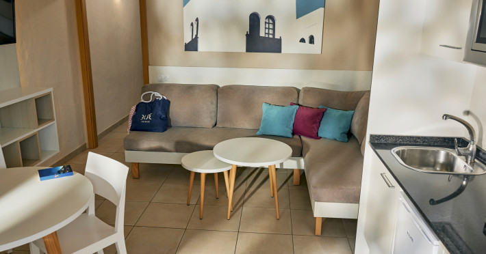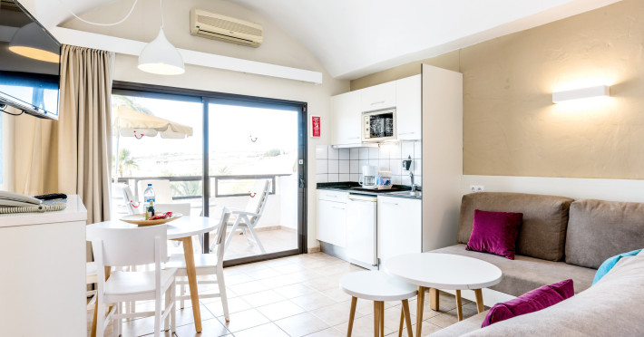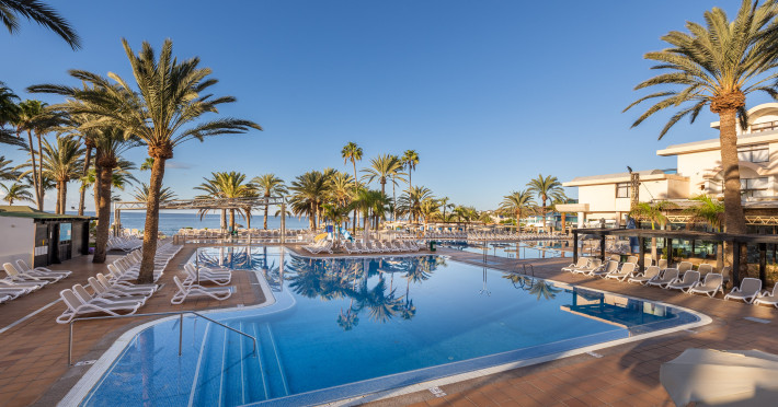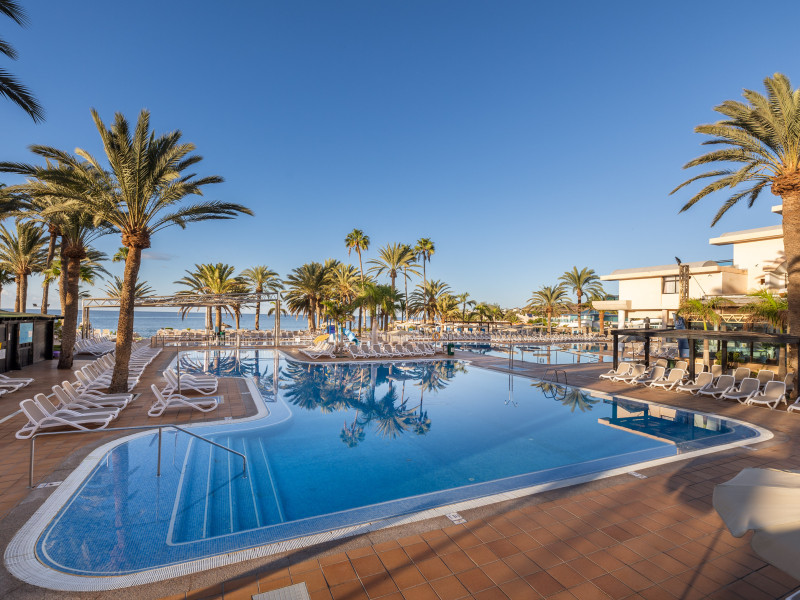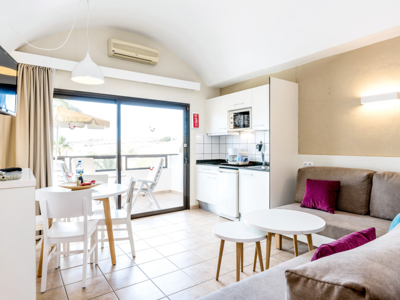 The aparthotel Grupotel Las Pitas is located approximately 300 m from a public sandy/rocky/stone beach. The nearest restaurants and bars can be found within 200 m. The old town is around 45 km away. A supermarket and other shops you also reach after approximately 200 m. On the beach are cushions and sun umbrellas for a fee as well as beach towels available. Near the beach there is a promenade where you can go for a stroll. The GPS-verified hotel has a 24h reception (check-in is possible around the clock), a lobby bar, Wi-Fi, internet access, a lift, a supermarket and other shops, a boutique, cash machine, a hairdresser, a jacuzzi, a first aid kit as well as a TV lounge with satellite TV. In the outdoor area of the property you will find a garden as well as a seasonally heated and supervised pool (open all year), where sun loungers, sun umbrellas and pool towels are available for free. There is also a separate children's pool with a non-swimming area as well as a water slide (type open/tunnel slide). Furthermore, you can relax outdoors on the sun terrace. You can store your valuables in the safe, and your luggage in the hotel`s storage room. In addition, the hotel Grupotel Las Pitas is video-monitored 24h a day. For the young hotel guests there is a playground. For very young guests, cots can also be provided. Kid`s chairs are available for a fee. For the smallest children prams can be rented in the hotel. For your comfort there is a concierge service. If necessary, you can contact the medical centre (for a fee). The energy supply is 220 Volts. For conventions and other business meetings, the hotel offers EXTRA_FEE conference rooms with printer, overhead projector as well as internet access. If you want to explore the holiday region, you can use the car rental service close to the hotel (extra fee). At the reception, tickets are offered for excursions in the area. For guests on their honeymoon, the hotel has special offers such as champagne in the room. In your hotel, a lot of focus is placed on sustainability. This includes the hotel`s own recycling bins, the provision of soap, shampoo and lotion dispensers, organic food and ecological meals, a central room air-conditioning and environmentally-friendly cleaning. That is why the hotel Grupotel Las Pitas was also awarded a sustainability certificate. Euro/Master Card, Visa and EC cards are accepted as means of payment. Due to its barrier-free facilities , such as a sliding door in the entrance area, a hotel door that can be opened manually, barrier-free entrances, wheelchair accessible rooms, a handrail in the elevator and wheelchair-accessible bathrooms, the hotel is also suitable for wheelchair users. Catering As catering services the hotel offers all-inclusive, half board, breakfast only and self-catering. Breakfast is offered from the buffet. Lunch and dinner are also served from the buffet with starters, salads and desserts. Half board includes breakfast and lunch. As part of the all-inclusive service, snacks (24h) as well as international alcoholic beverages (24h, limited) are available at no extra charge. For the meals, there are a buffet restaurant with terrace (calorie-reduced, gluten-free and vegetarian dishes) and the cafeteria as well as the pool bar. The drinks menu of the hotel includes water, soft drinks, coffee and tea, beer and wine. A picnic bench can be used by guests for self-catering. Appropriate clothing is required for lunch and dinner. Distances