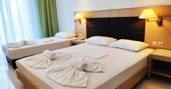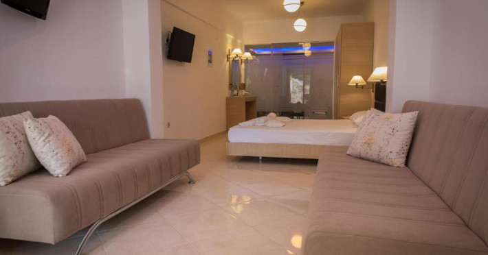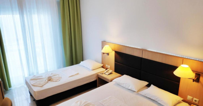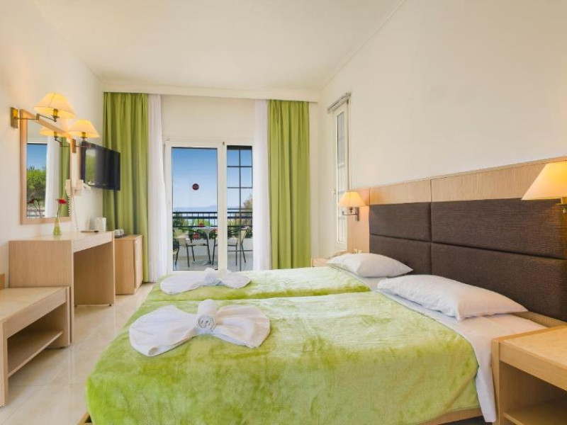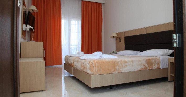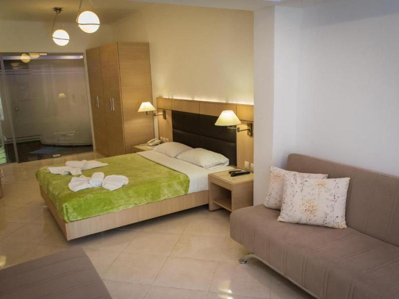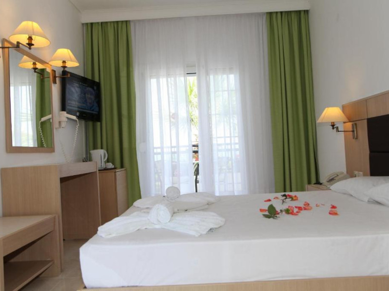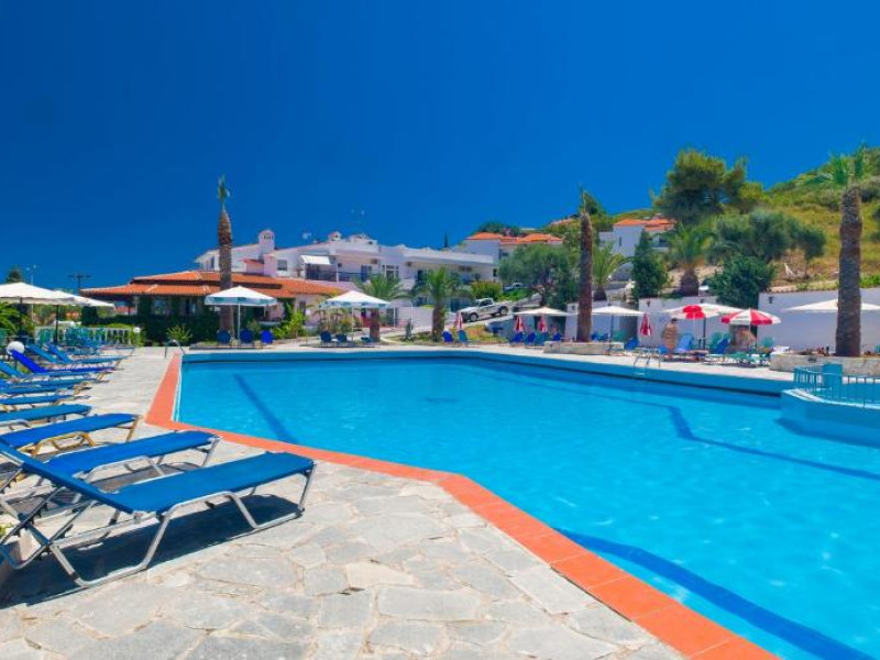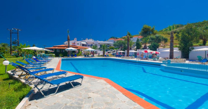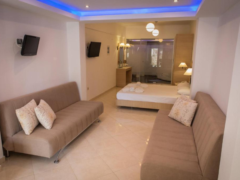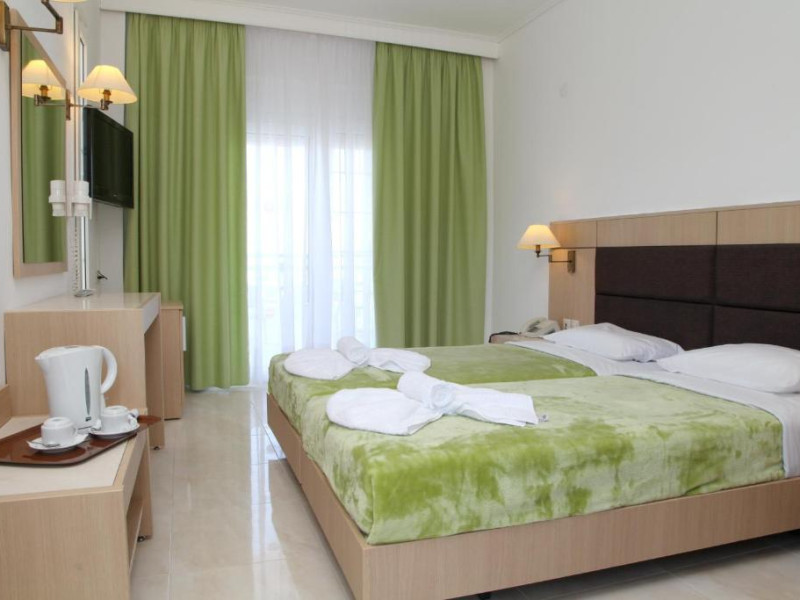 Camerele luminoase și spațioase sunt dotate cu aer condiționat, TV prin satelit și balcon - multe dintre ele oferind vedere spre Marea Egee. Oaspeții se pot relaxa la piscina in aer liber, inconjurată de șezlonguri și umbrele, sau pot savura băuturi răcoritoare la barul de la piscină.