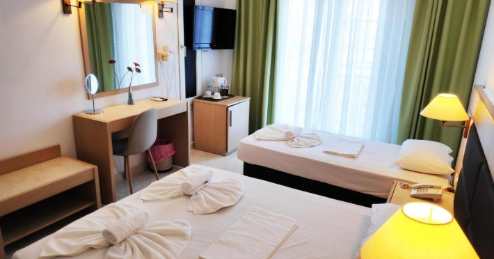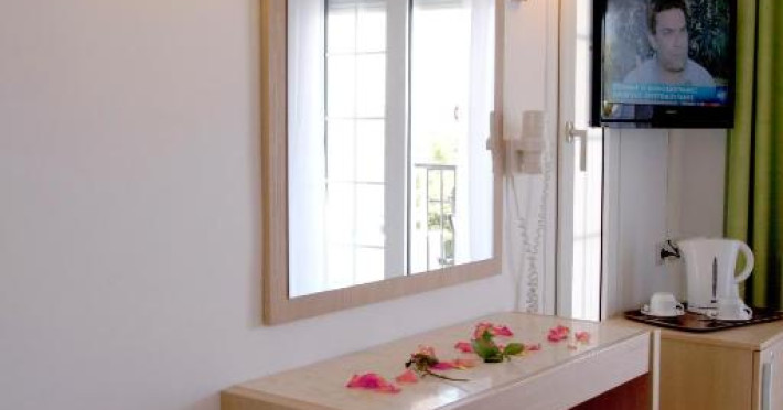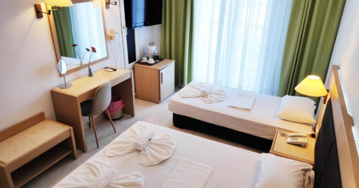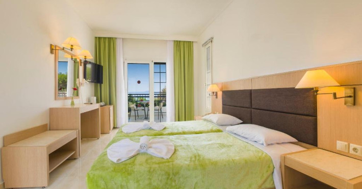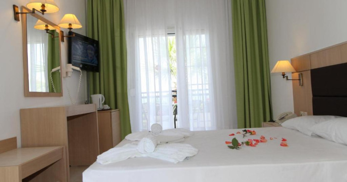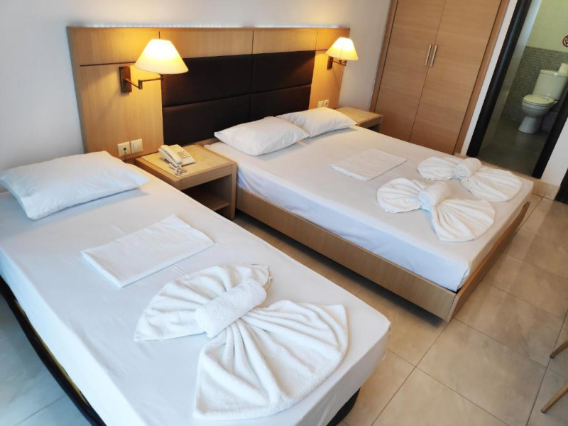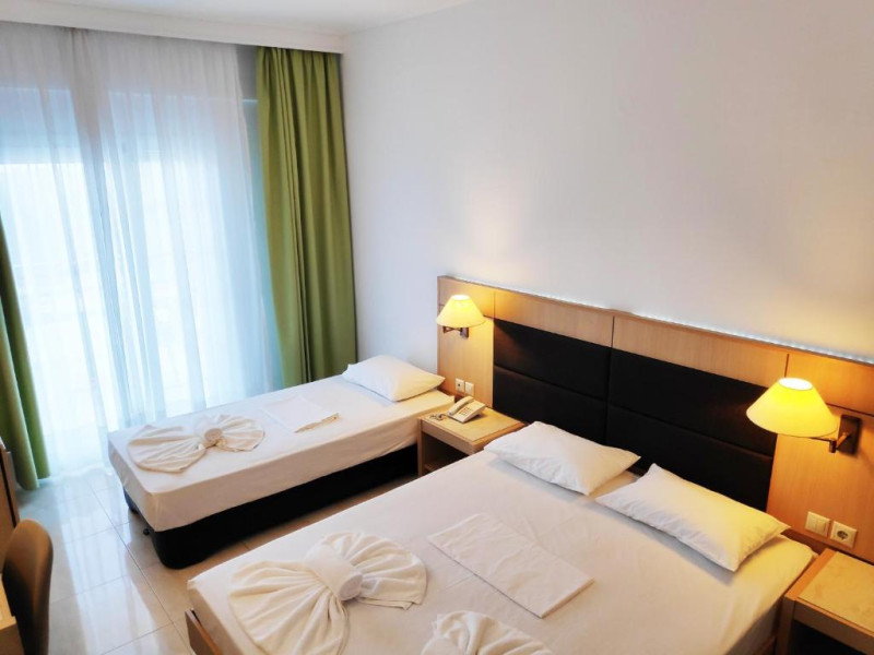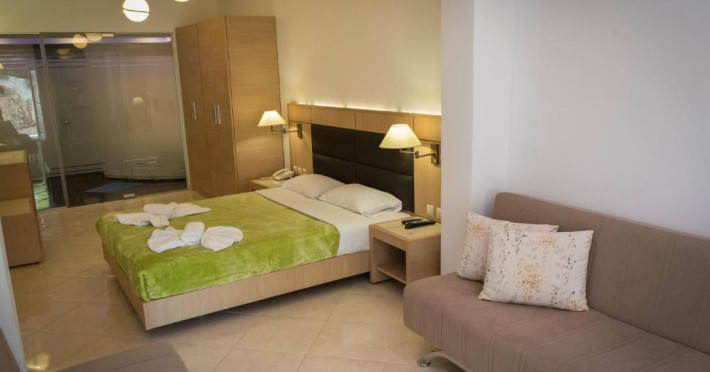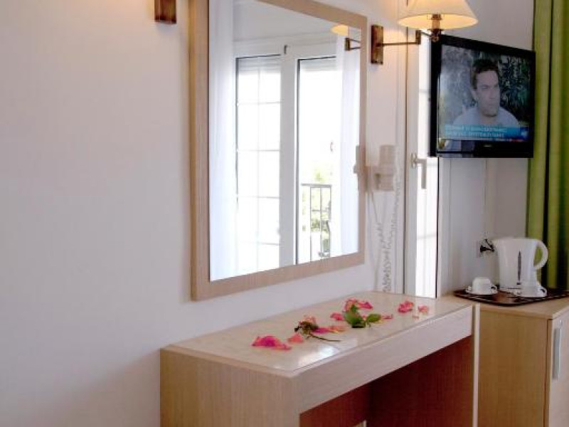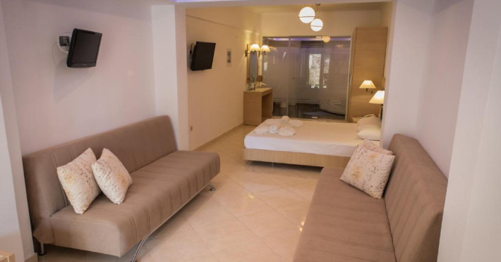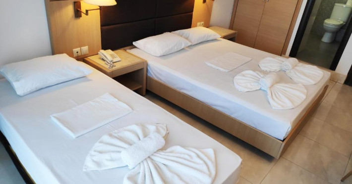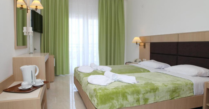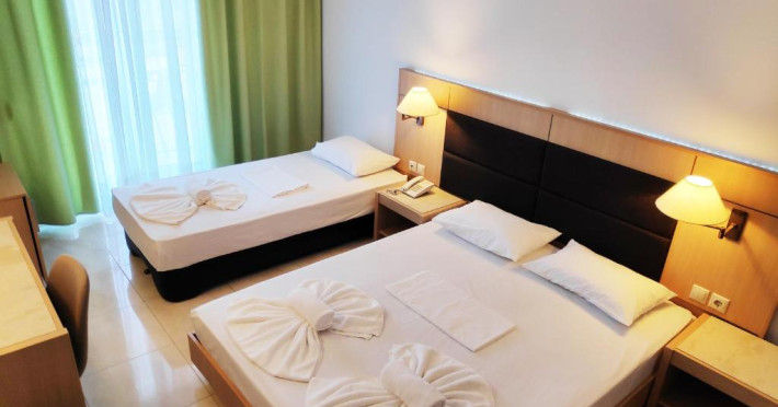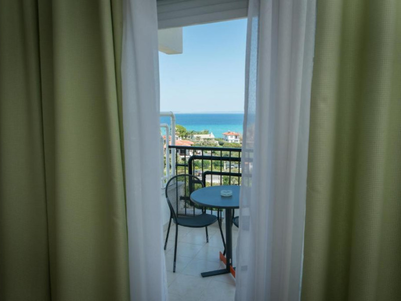 Camerele luminoase și spațioase sunt dotate cu aer condiționat, TV prin satelit și balcon - multe dintre ele oferind vedere spre Marea Egee. Oaspeții se pot relaxa la piscina in aer liber, inconjurată de șezlonguri și umbrele, sau pot savura băuturi răcoritoare la barul de la piscină.