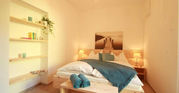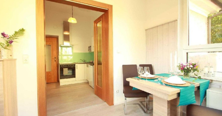 Apartamentul FRANZ are 50 m/2 si este format dintr-un dormitor, o bucatarie complet dotata, un living-room mare (38 m/2) cu canapea extensibila, balcon. In baie are si masina de spalat.