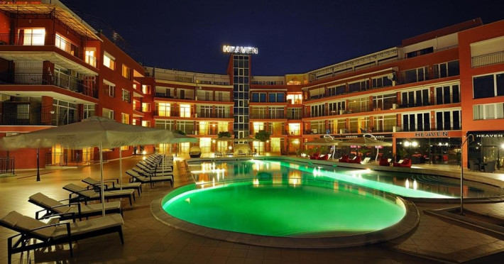 Localizare: Hotelul Heaven se afla chiar pe plaja, la aproximativ 500 de metri de centrul statiunii Sunny Beach si la 150 de metri de un parc acvatic. Sveti Vlas este la 3 km, iar centrul istoric al orasului Nessebar se afla la 6 km. Facilitati hotel: Hotelul pune la dispozitia turistilor bar in hol, seif la receptie, piscina in aer liber, program de divertisment, umbrele si sezlonguri la piscina, piscina pentru copii, parcare (contra cost). Dotari camere: Camerele sunt dotate cu aer conditionat, TV, telefon, Wi-Fi in camera, uscator de par.