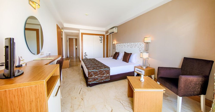Facilitati hotel: Hotelul ofera oaspetilor sai urmatoarele facilitati: restaurant principal, patiserie, 4 restaurante a la carte (italian, mexican, pescaresc, turcesc), 6 baruri, 3 piscine exterioare, piscina interioara, piscina pentru copii, aquapark cu 5 tobogane, mini aquapark, hammam, centru fitness, sauna, basket, boccia, voley pe plaja, mini fotbal, tenis de masa, aerobic, tenis, darts, muzica live, discoteca, program de animatie, sali de conferinta, mini club, junior, club, piscina pentru copii, mini aquapark. Servicii cu plata: fresh-uri naturale din fructe, bauturile imbuteliate, bauturi premium si de import, echipamet si nocturna pentru tenis, sporturi acvatice, masaj si alte tratamente, curatatorie, telefon, fax, biliard, room service.