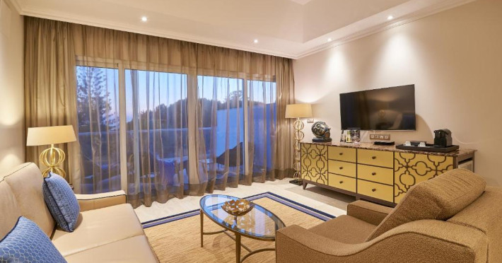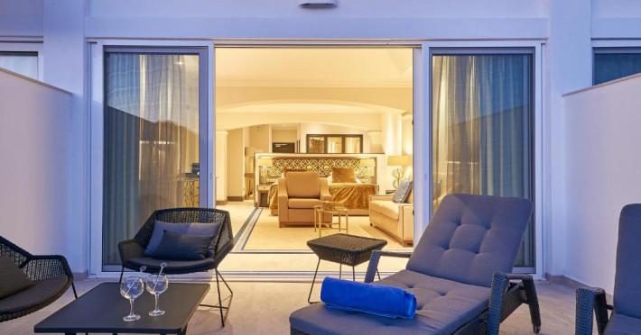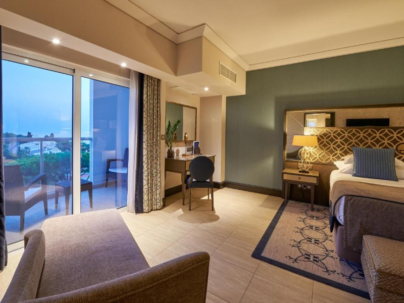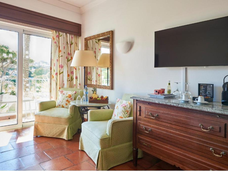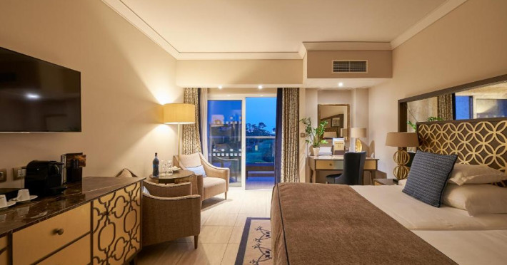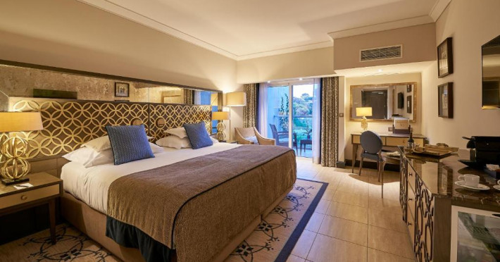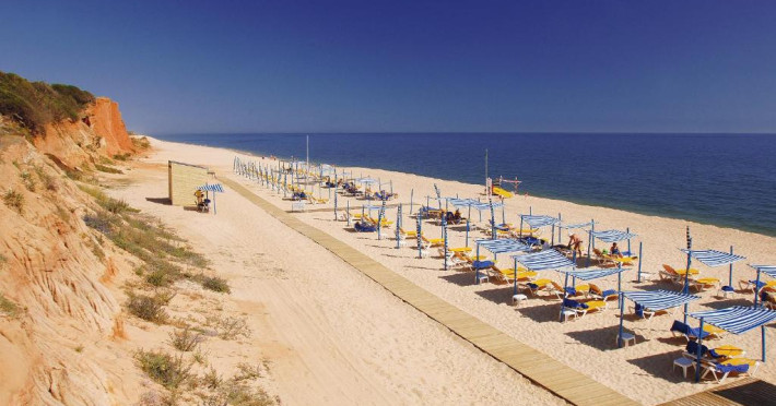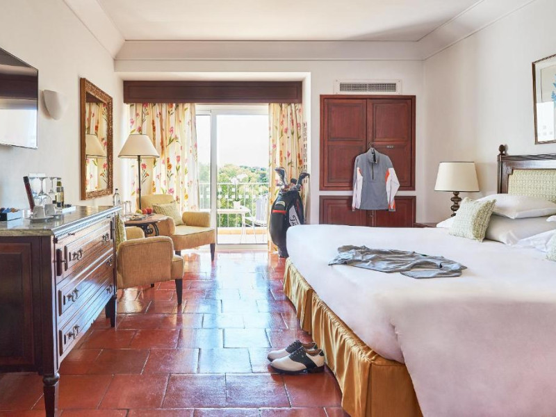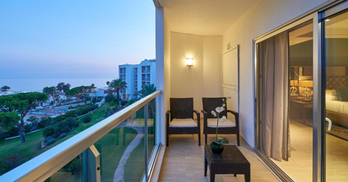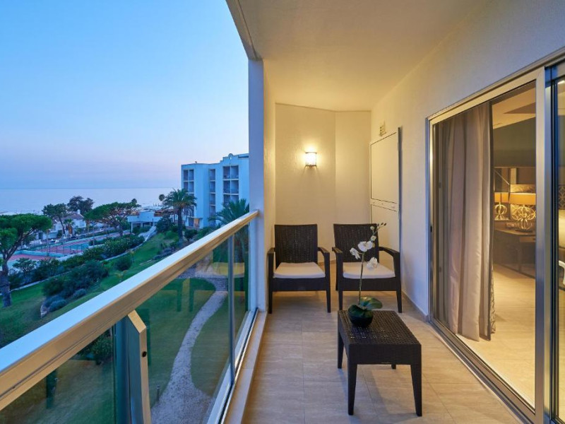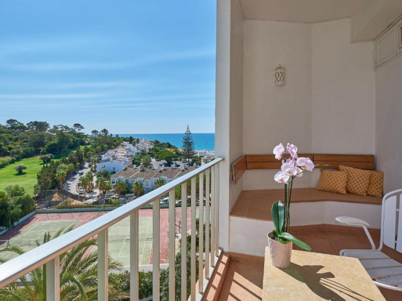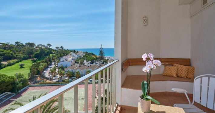 La doar 200 de metri de plaja Vale do Lobo, Hotelul Dona Filipa oferă camere cu balcon cu vedere panoramică la terenul de golf Vale do Lobo, Oceanul Atlantic sau sat.