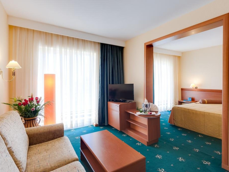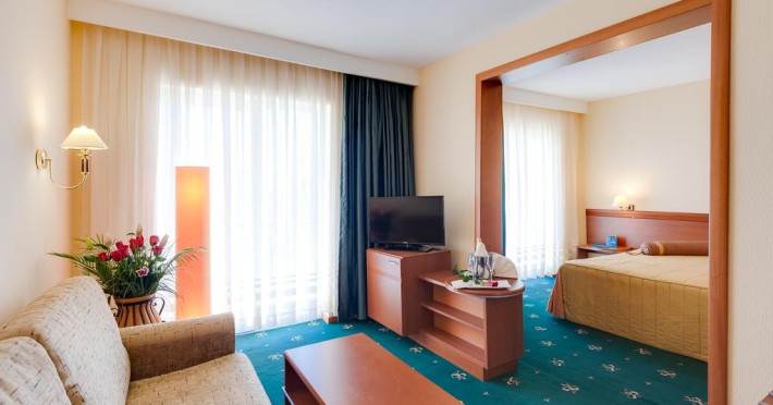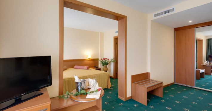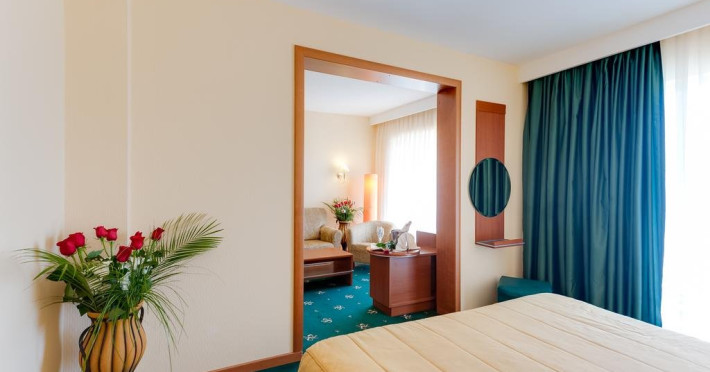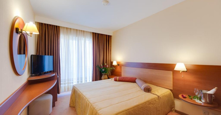 Dotari generale: 104 camere duble, restaurant, bar, salon mic-dejun, sala de conferinte, sala de fitness, piscina, lift, camera de bagaje, schimb valutar, parcare Dotari camere: Toate camerele au in dotare instalatie de climatizare, minibar, internet, televizor, cablu tv., telefon, grup sanitar propriu. In camere nu se poate amplasa pat suplimentar. Alte servicii si facilitati: Accesul la piscina hotelului se face contra cost! Serviciile de masa :