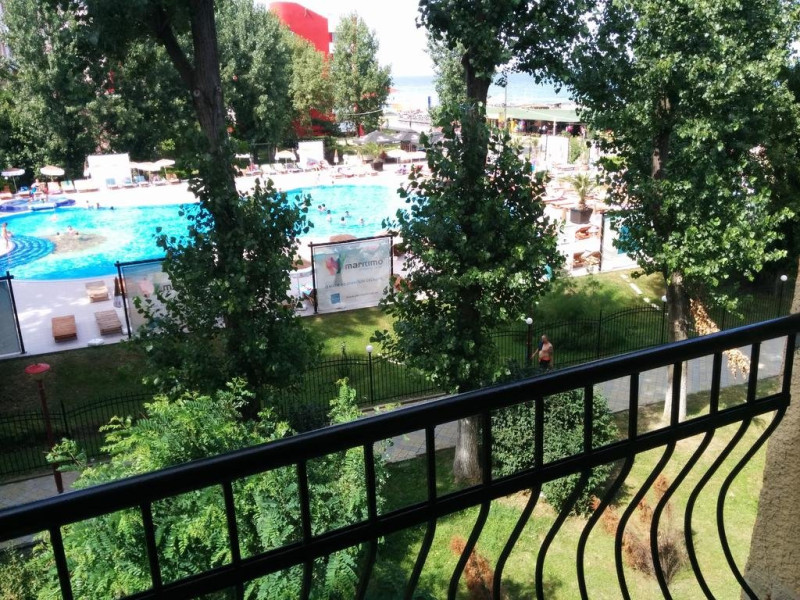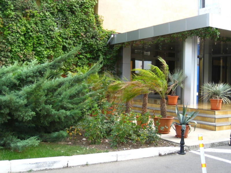 HOTEL PALAS 4**** Situat in nordul statiunii Mamaia, pe faleza, langa Hotel Golden Tulip, la 50 de metri de plaja, face parte din Complexul turistic Palas Pelican, alaturi de Hotel Pelican. Este vorba practic de doua hoteluri distincte, unul de patru si celelalt de trei stele, legate intre ele print-un corp de legatura destinat celor doua restaurante. Hotel Palas este una dintre cele mai bune variante de cazare din Mamaia datorita dotarilor si serviciilor de foarte buna calitate.Interioarele sunt spatioase si amenajate cu multa grija si bun-gust. Holul de la intrarea in hotel este luminos si elegant. Camerele duble au mobilier nou, internet, instalatie de climatizare, minibar, televizor si telefon. Hotel Palas este construit perpendicular pe tarmul marii si de aceea are majoritatea camerelor cu vedere spre mare. Pentru servitul mesei, exista un salon pentru mic-dejun, restaurant si o terasa in aer liber cu iesire spre piscina. La piscina (comuna cu Hotel Pelican) este amenajat un jacuzzi, bar, loc pentru sezlonguri si umbrelute.