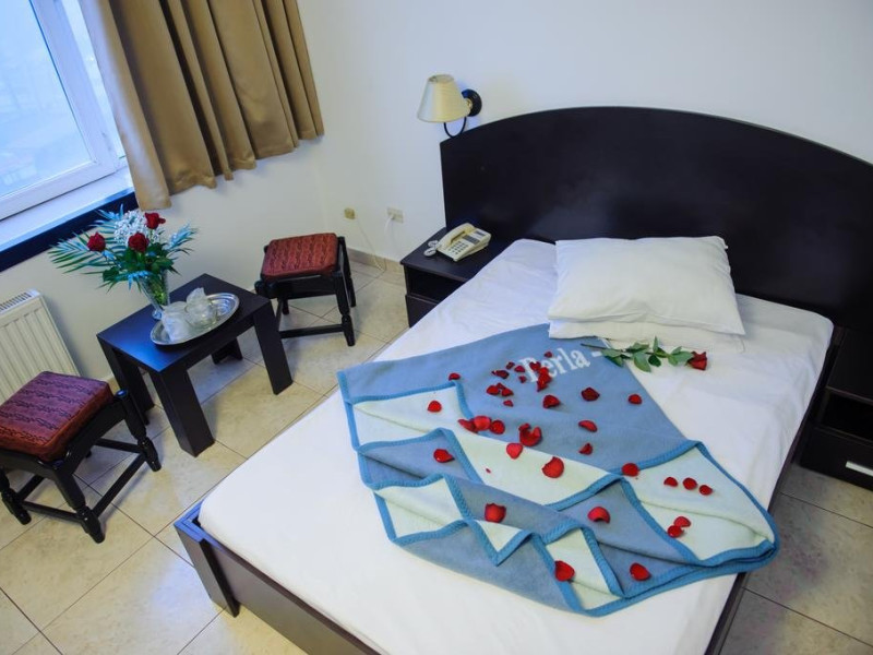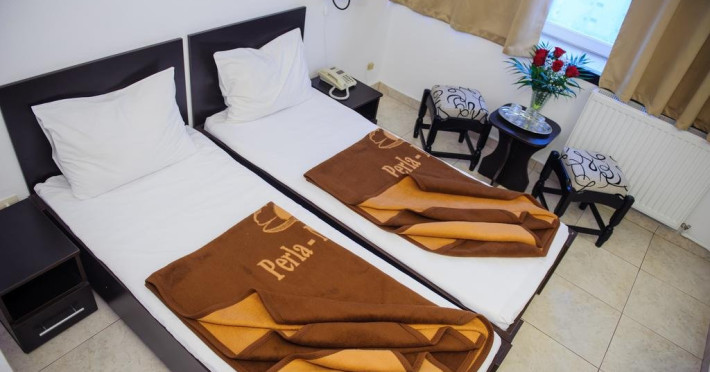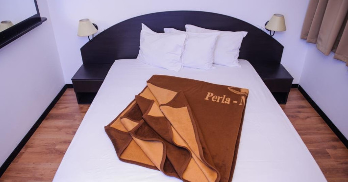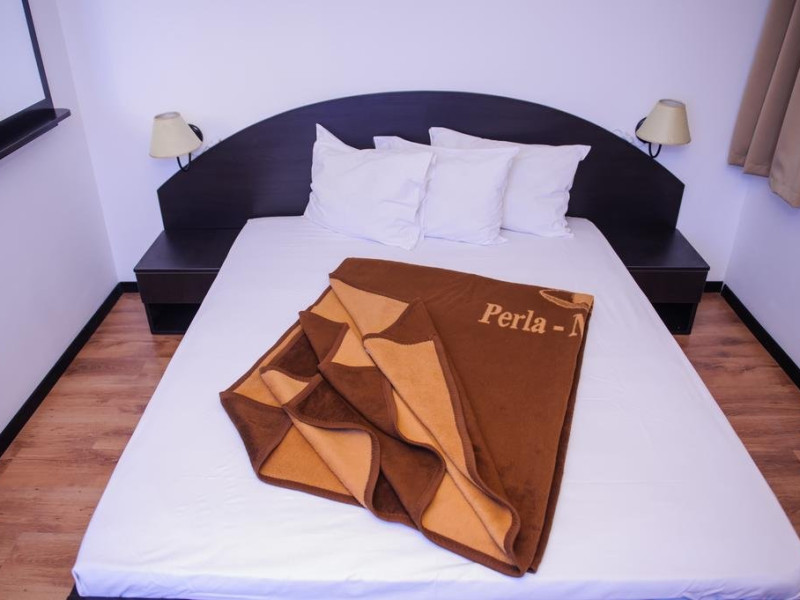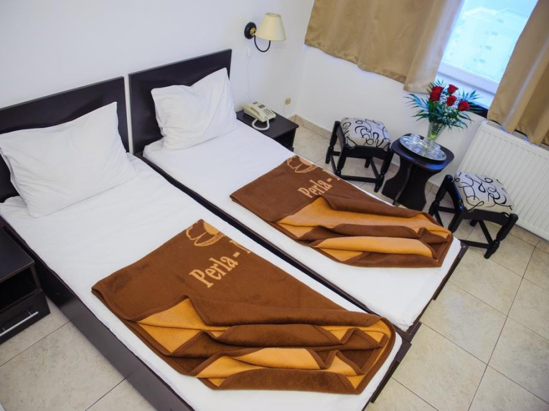 Hotel Perla 3*** face parte din grupul de firme Perla Majestic, alaturi de hotelurile: Majestic din Mamaia, Majestic din Olimp, Majestic din Jupiter, Forum din Costinesti. Hotel Perla beneficiaza de o pozitie privilegiata in statiunea Mamaia, fiind situat la o distanta mica, intre 100 si 200 de metri de principalele atractii din zona de sud a statiunii: Aqua Magic, plaja, Satul de Vacanta, Telegondola, Teatrul de Vara. Hotelul a fost renovat integral in anul 1999. Toate camerele au vedere spre mare. Hotel Perla este deschis tot timpul anului si este unul dintre putinele hoteluri de pe litoral care in timpul sezonului estival ofera servicii all inclusive in pachete complete de cazare si masa. Dotari generale: - 159 camere duble, 11 camere single, 11 camere triple, 32 apartamente - Restaurant - Crama - Baruri - Piscina - Frizerie, coafor, cosmetica - Sala de conferinte (170 locuri) - Parcare Dotari camere: - Toate camerele sunt dotate cu: televizor, cablu tv, telefon, minibar, aer conditionat, baie cu dus, geamuri termopan. - Apartamentele sunt formate din living + dormitor - Camerele nu au balcon