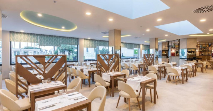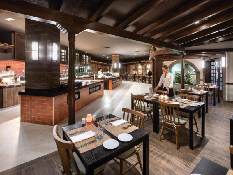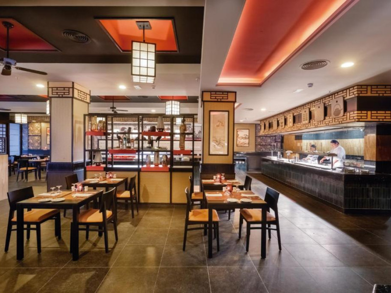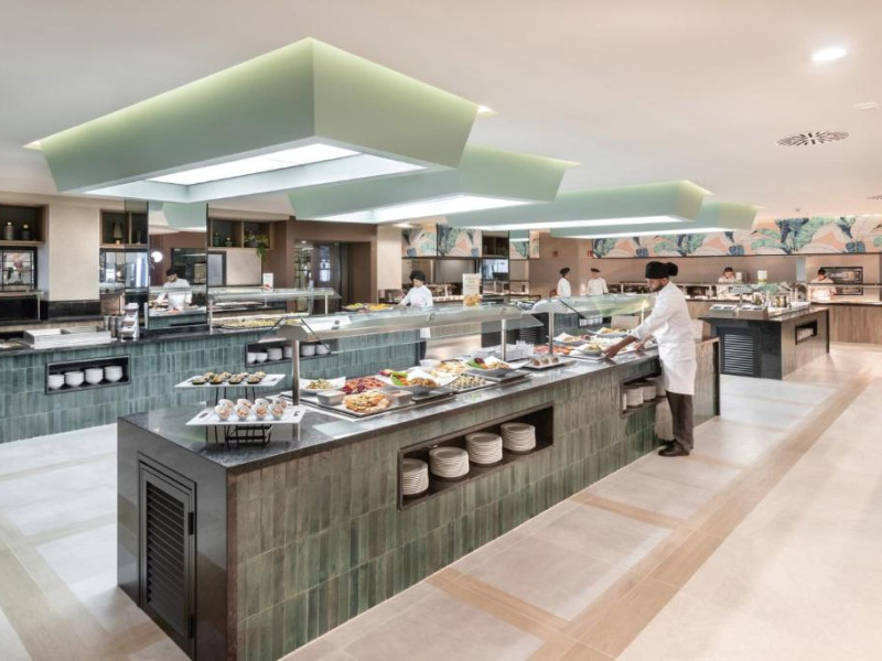 Complexul dispune de 5 piscine (dintre care 2 pentru copii), inconjurate de terase spațioase pentru plajă și grădini tropicale bine intreținute. Programul all inclusive include acces la 4 restaurante tematice care servesc specialități internaționale, spaniole și asiatice, plus mai multe baruri răspandite strategic in resort.
