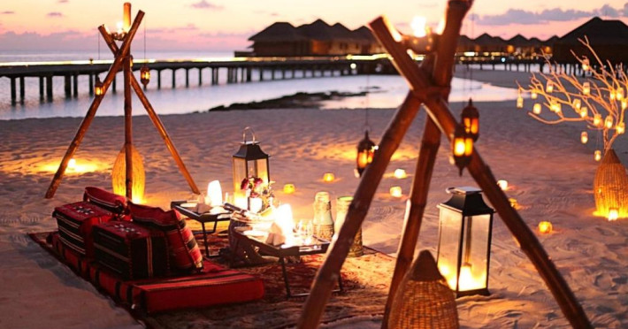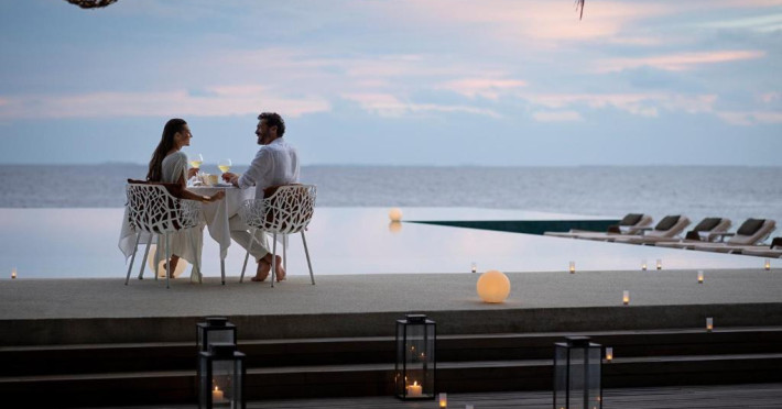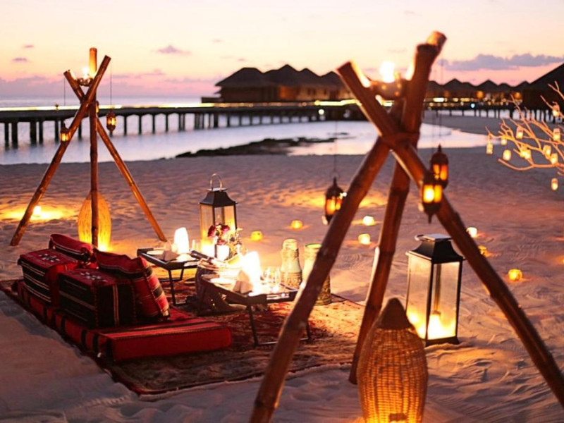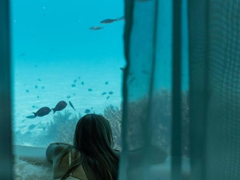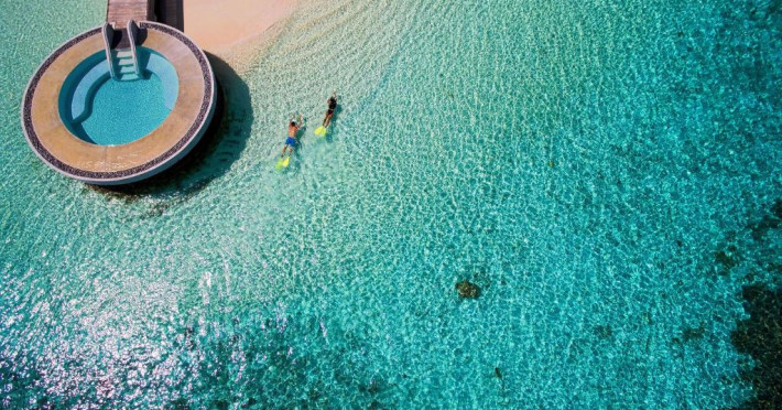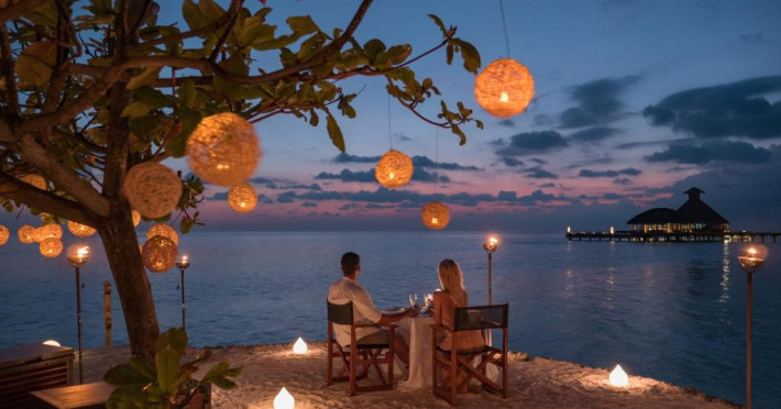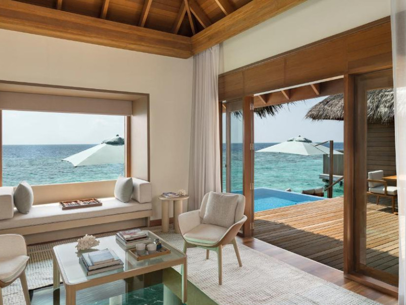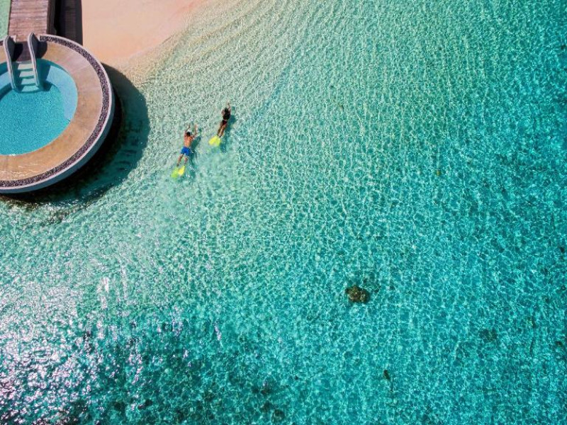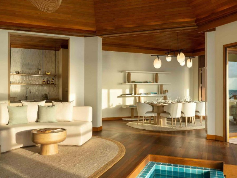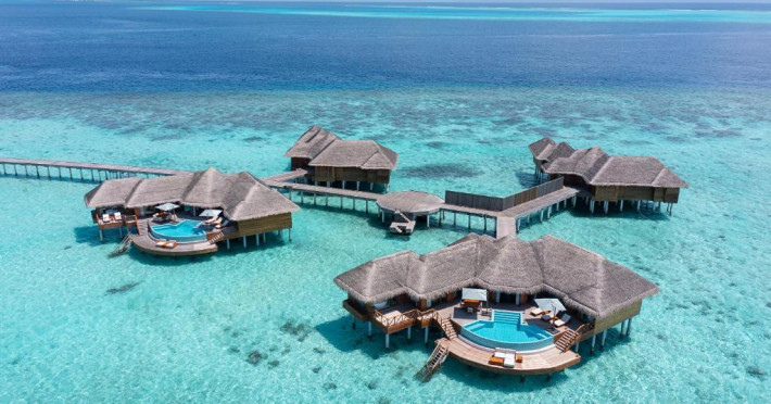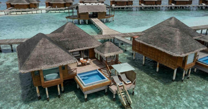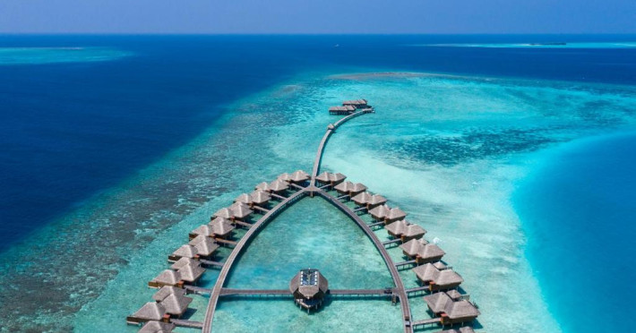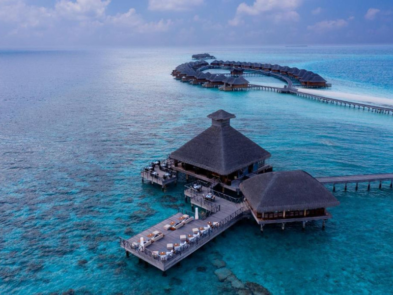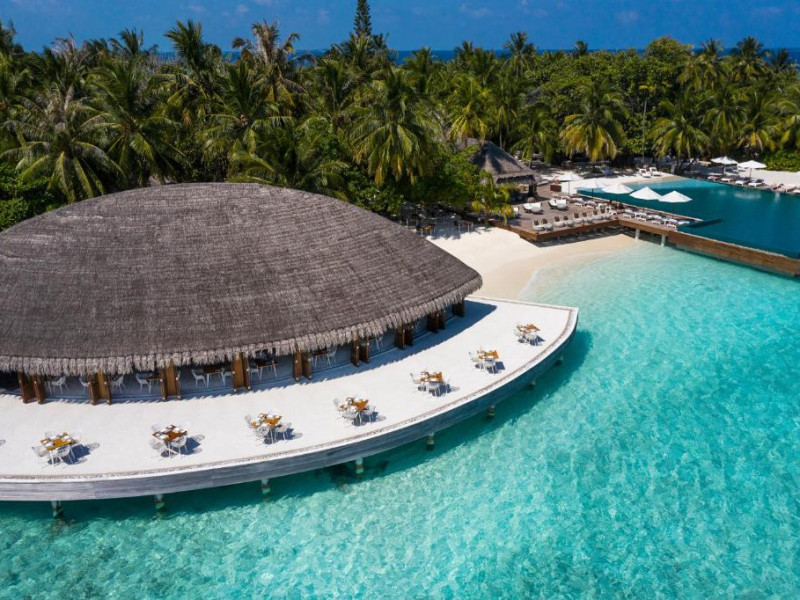 Huvafen Fushi este un complex de lux situat pe atolul Malé Nord din Maldive. Oferă bungalouri deasupra apei si pe plajă cu piscină privată, acces gratuit la WiFi in intreaga proprietate si 6 restaurante.