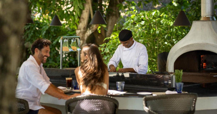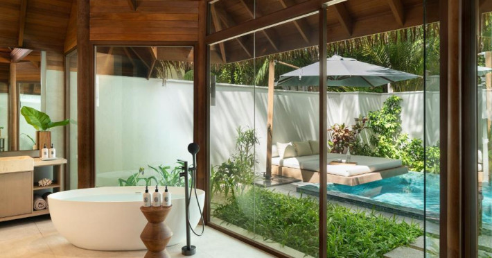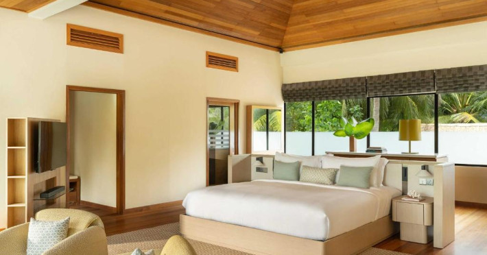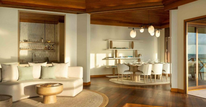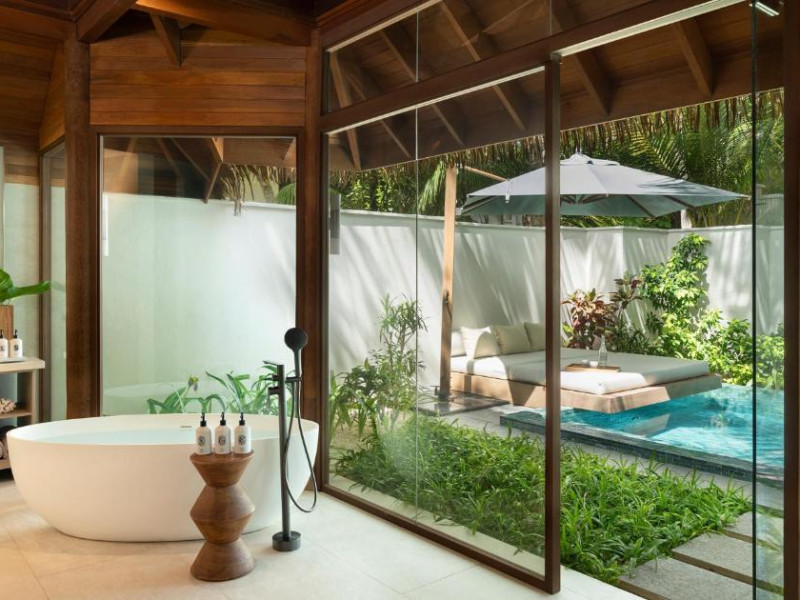 Fiecare bungalou spațios este dotat cu TV mare cu ecran plat și canale prin satelit, difuzor bluetooth Bang și Olufsen, precum și o terasă la soare. Băile private au dus cu efect de ploaie si cadă separată. Facilitătile suplimentare includ papuci.