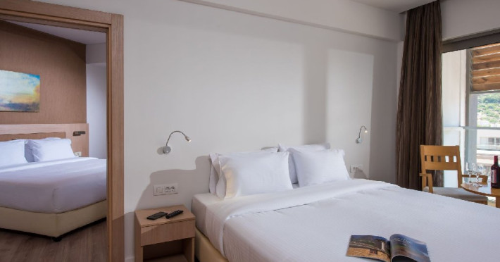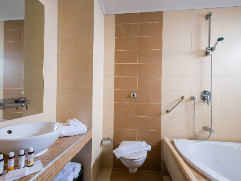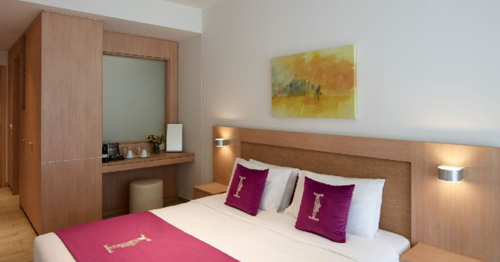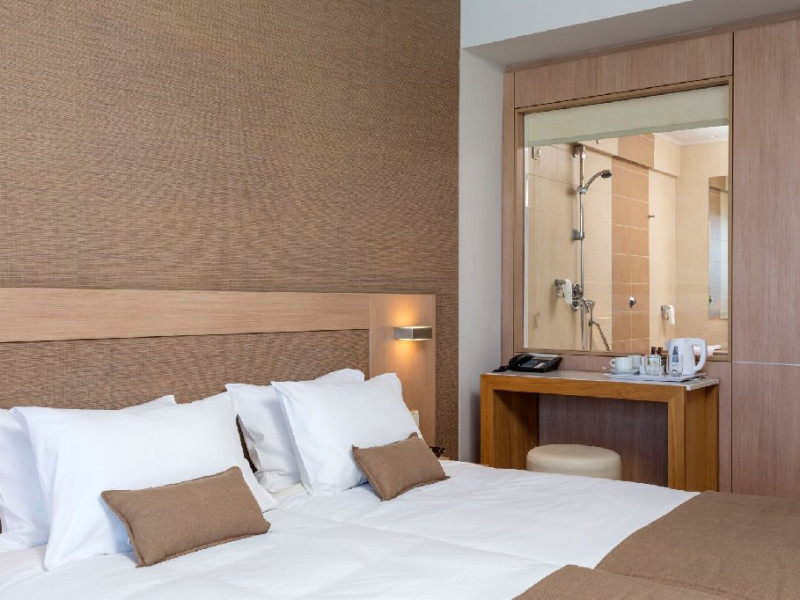 Dotari camere: I - Resort Beach Hotel & Spa are 236 de unitati de cazare de mai multe categorii: camere duble comfort de aprox 22 mp, camere duble gold de aprox 22 mp, camere comfort family open plan de aprox 27 mp cu 1 dormitor si zona de stat, echipate cu 1 pat dublu si 1 pat single, camere gold family de aprox 31 mp, fara vedere la mare, recent construite cu 1 dormitor si 1 zona de stat, echipate cu 1 pat dublu si 1 pat single, camere comfort family cu 2 dormitoare de 31 mp, echipate cu 1 pat dublu si 2 paturi single, camere family gold cu 2 dormitoare de 41 mp compuse din 2 dormitoare si 1 living, echipate cu 1 pat dublu si 2 paturi single, gold junior suite de 35 mp cu 1 dormitor si un living cu 1 pat dublu si 1 sofa. Toate camerele sunt dotate cu aer conditionat individual, wi-fi gratuit, telefon (cu plata), seif gratuit, TV satelit, mini frigider (alimentat gratuit cu bauturi racoritoare doar la sosire, dupa care realimentarea este contra cost), facilitati pentru preparat cafea/ceai, baie cu dus sau cada, uscator de par, halat si papuci, balcon. Curatenie se face in fiecare zi, iar prosoapele si lenjeria se schimba zilnic.Facilitati hotel: I - Resort Beach Hotel & Spa ofera clientilor sai receptie 24 de ore, salon cu terasa, camera pentru bagaje, 4 lifturi, wi-fi gratuit in toate zonele hotelului, plaja privata, 2 piscine exterioare cu apa dulce , umbrele si sezlonguri gratuite atat la piscina, cat si pe plaja, prosoape pentru plaja si piscina gratuite, parcare privata gratuita, prim ajutor, doctor la cerere (cu plata). Hotelul dispune de un restaurant principal cu zona SHO W cooking si terasa (bucatarie greceasca, internationala si mediteraneana, un restaurant a la carte contra cost , lobby bar, pool snack bar Hotelul organizeaza programe de animatie ziua (yoga, pilates, stretching, darts, boccia, archery etc) si seara (live music). Exista centru Spa si sala fitness.