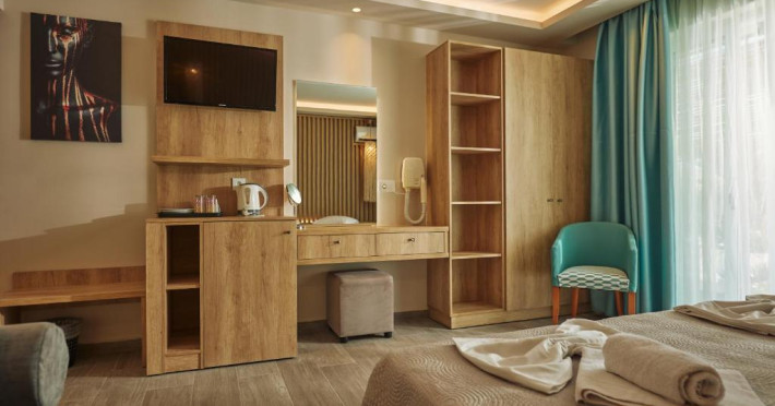 Toate camerele Hotelului Iniochos au TV si aer conditionat. De asemenea, toate includ si o chicinetă cu frigider. Unitătile de cazare au baie privată cu dus sau cadă.