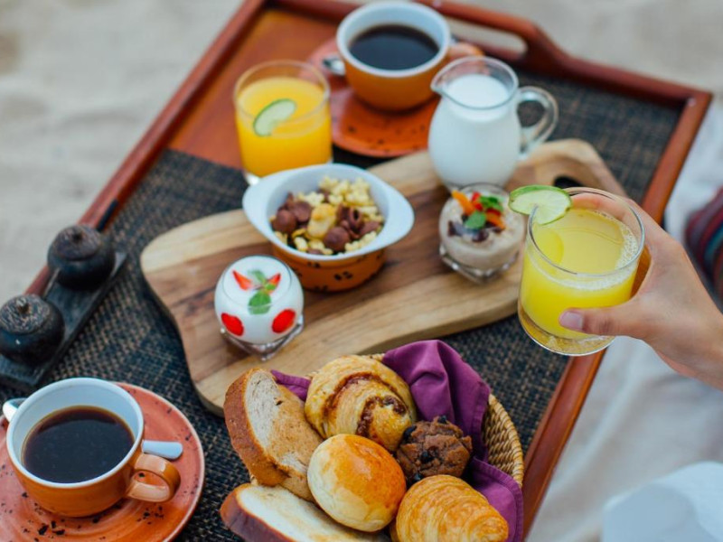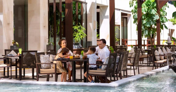 Nyala Beach Club & Grill, certificat Halal, este specializat in preparate din fructe de mare și delicii la grătar, in timp ce Layang Layang servește preparate din bucătăria indoneziană și occidentală. Există, de asemenea, un lounge unde oaspeții se pot bucura de cafea și ceai după-amiaza.