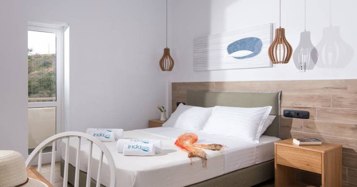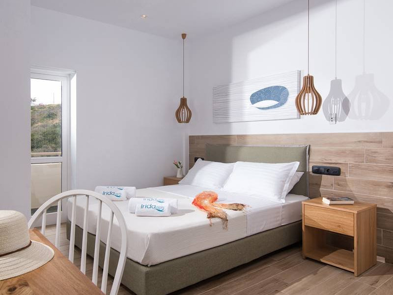 Descriere: Complexul este compus din Irida Hotel Apartments si irida Gardens. Irida Apartments este situat pe un deal cu vedere la golf si la satul pitoresc Agia pelagia; iar Irida Gardens (anexa) este situata chiar vizavi de Hotel Apartments, peste drum la o distanta de 40 m si este compus din 3 studiouri si 1 maisonette. Aeroportul din Heraklion este la 16 km de hotel.