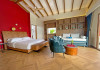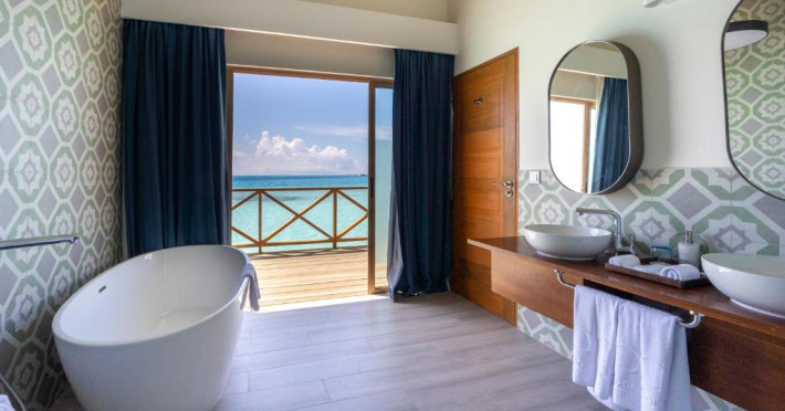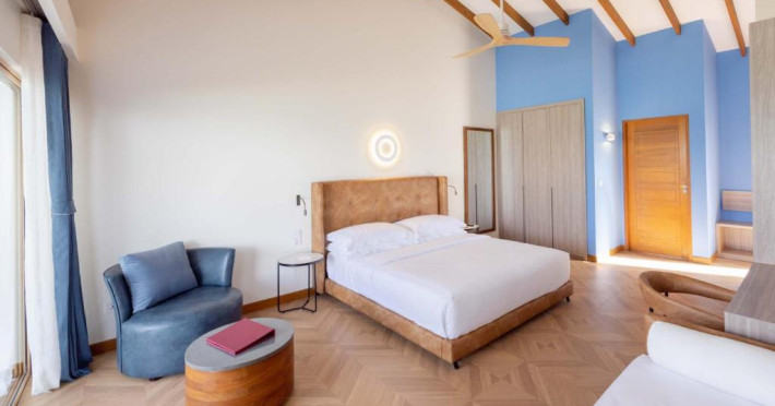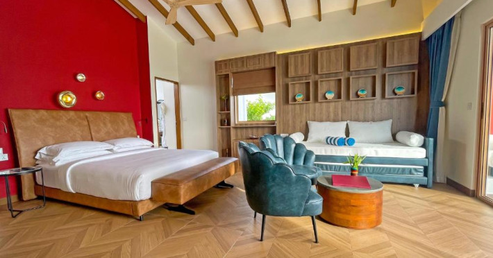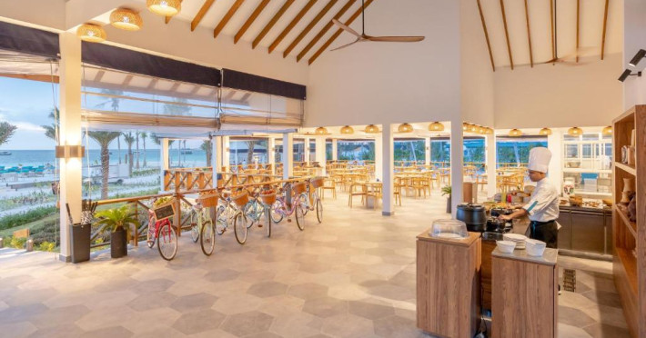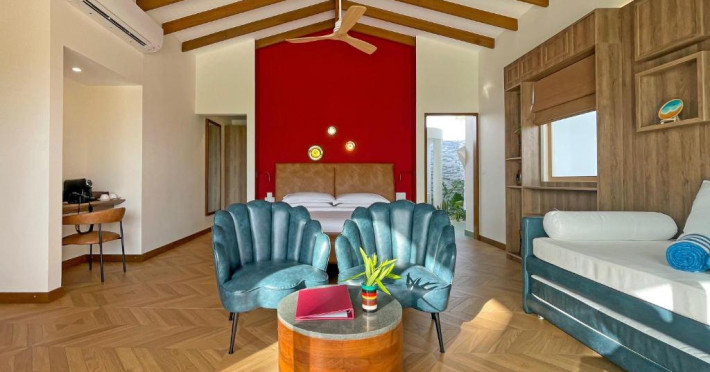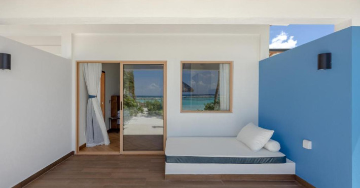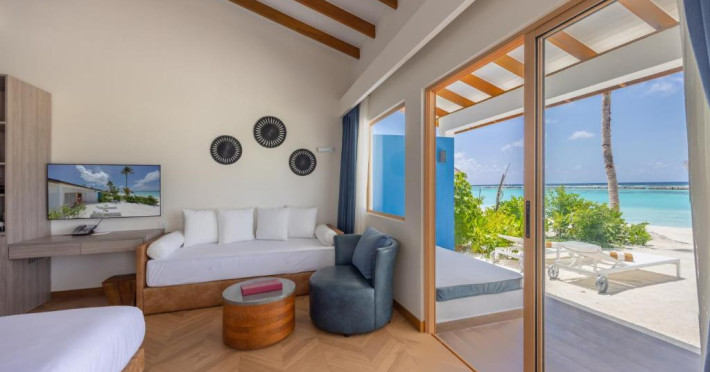 Unitățile sunt dotate cu climatizare, un televizor cu ecran plat cu canale prin cablu, un minibar, o cafetieră, un bideu, articole de toaletă gratuite și un birou. Acest complex are unele unități cu vedere la mare, iar toate camerele sunt echipate cu un balcon. La Joy Island Maldives, camerele sunt dotate cu lenjerie de pat și prosoape. Oaspeții pot savura in fiecare dimineață un mic dejun tip bufet, continental sau englezesc/irlandez complet. Joy Island Maldives are un restaurant care servește mancăruri din bucătăria americană, italiană și mediteraneană.