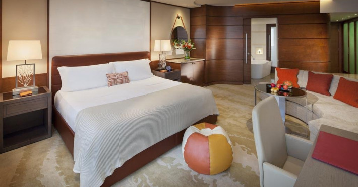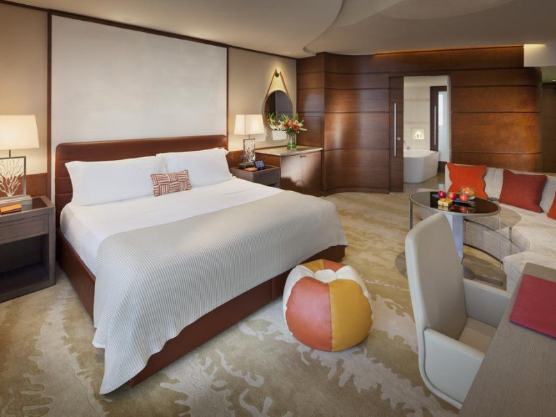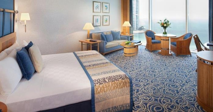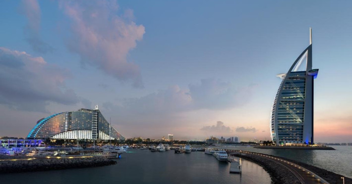 Localizare: Hotelul Jumeirah Beach este un hotel de lux de cinci stele, premiat in Dubai, situat direct pe malul marii in Jumeirah si proiectat sub forma unui val de rupere. Descriere: Cu un design izometric, Jumeirah Beach Hotel este una dintre cele mai uimitoare si mai usor de recunoscut structuri din Dubai, cu sticla placata cu albastru, care reflecta artistic valurile oceanului. Compus din 599 de camere si apartamente cu vedere la ocean, 19 vile traditionale in stil arab cu vedere spre plaja, 21 de restaurante, cafenele si baruri, 6 piscine si o plaja privata. Oaspetii tuturor camerelor Hotelului Jumeirah Beach beneficiaza de acces gratuit nelimitat la parcul acvatic Wild Wadi. Terenuri de tenis, un teren multifunctional si trei terenuri de squash. Spa Talise cu sauna, sali de masaj, cad cu hidromasaj, jacuzzi, baie de aburi si bazin de inot. Talise Fitness, infiintat cu cele mai noi tehnologii Technogym. Acest hotel ofer un serviciu de transfer gratuit la Mall of the Emirates. Souk-ul Madinat Jumeirah este la 10 minute de mers pe jos de hotel. Sinbads Kids Club are program zilnic de activitLLi pentru copii. Facilitati hotel: Restaurante, baruri, piscine, internet Wi-fi, acces direct pe plaja, accepta animale de companie, centru SPA: baie cu aburi, centru estetic, masaj, sauna, jacuzzi, miniclub copii si loc de joaca pentru copii, teren de tenis, club fitness, minimarket, sali de conferinta, servicii spalatorie, servicii valet, coafor, nightclub. Dotari camere: Camerele sunt spatioase - 50 mp, cu ferestre din podea pana in tavan, oferind vedere la Golful Arabic. Toate camerele sunt dotate cu TV LCD, turndown service de seara si acces gratuit la internet WiFi, aer conditionat, telefon, seif, fierbator de apa, fier/masa de calcat, birou, baie cu cada sau cabina de dus, uscator de par, oglinda cosmetica. Website: https://www.jumeirah.com/en/hotels-resorts/dubai/jumeirah-beach-hotel/