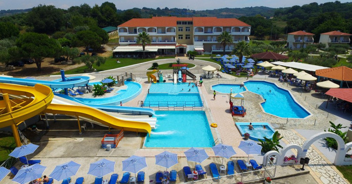 Facilitati hotel: Hotelul pune la dispozitia turistilor, receptie, restaurant, snack bar, Water park ( 5 tobogane adulti, 4 tobogane copii, lazy river, jacuzzi), 2 terenuri de fotbal cu iarba, teren de tenis, basket, ping-pong, jocuri video, internet, loc de joaca pentru copii, parcare privata.