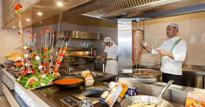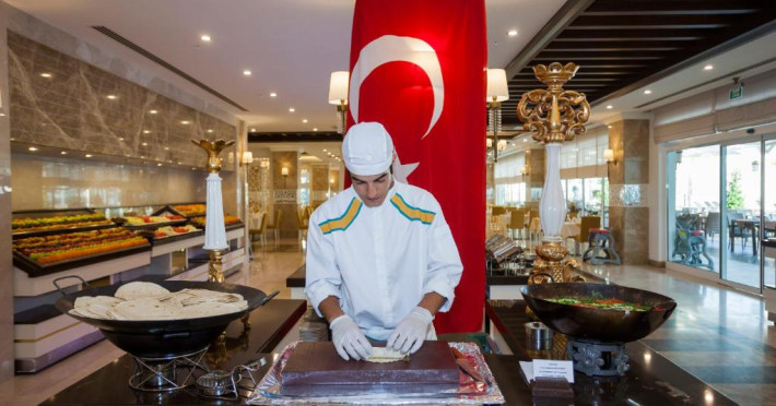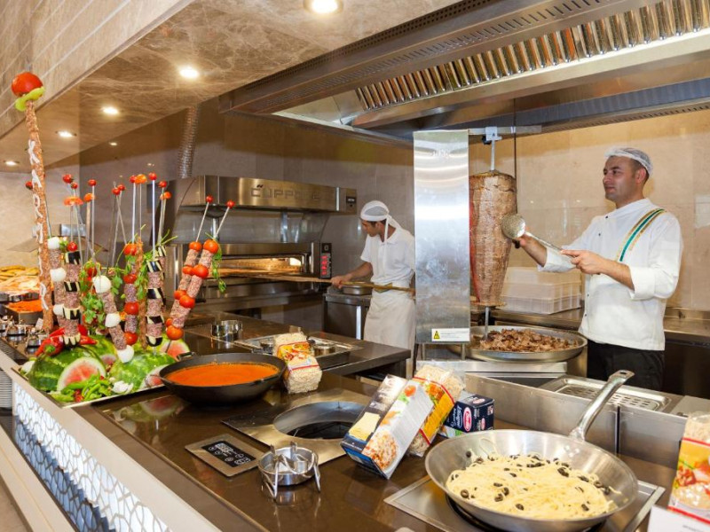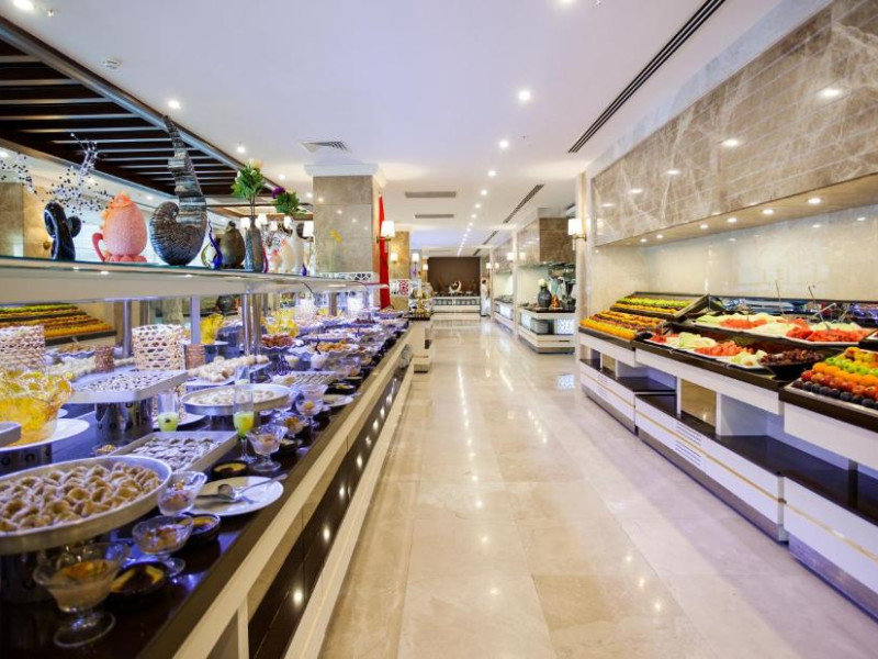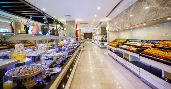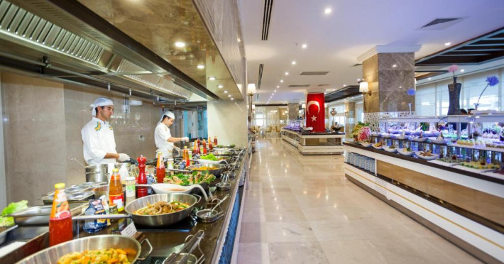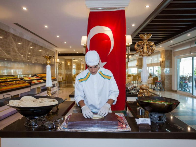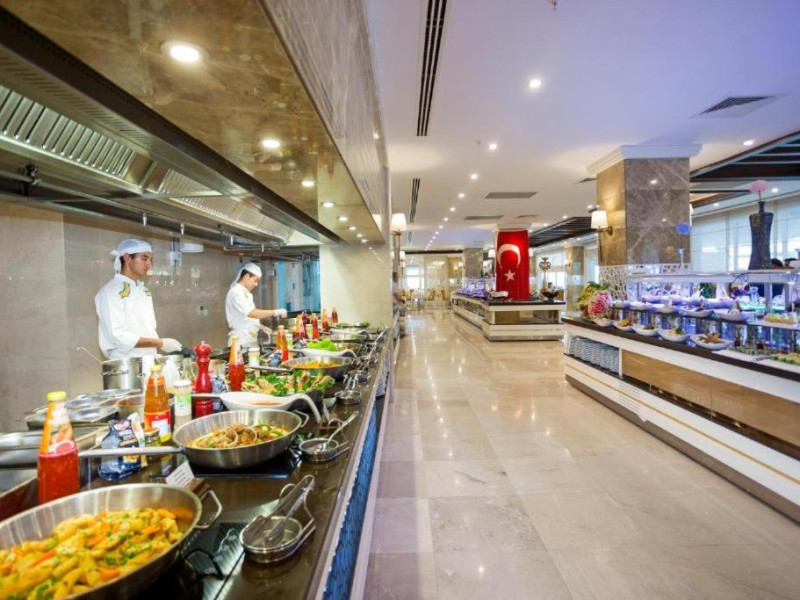 Oaspeții pot savura o gamă largă de preparate din bucătăria turcească și internațională la numeroasele localuri de luat masa ale hotelului, care includ un restaurant principal care oferă diferite bufete, un restaurantul a la carte turcesc și unul italian. Ca și opțiuni alternative, există un snack bar la piscină, o patiserie, standuri cu inghețată, diferite baruri, un bufet sănătos și un bufet pentru copii.