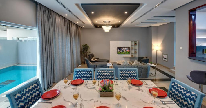 Oaspeții beneficiază de acces la piscină, sală de fitness și parcare gratuită. Apartamentele sunt dotate cu aer condiționat, zone de living spațioase și Wi-Fi gratuit. Bucătăriile moderne includ toate facilitățile necesare pentru a găti in confort.
